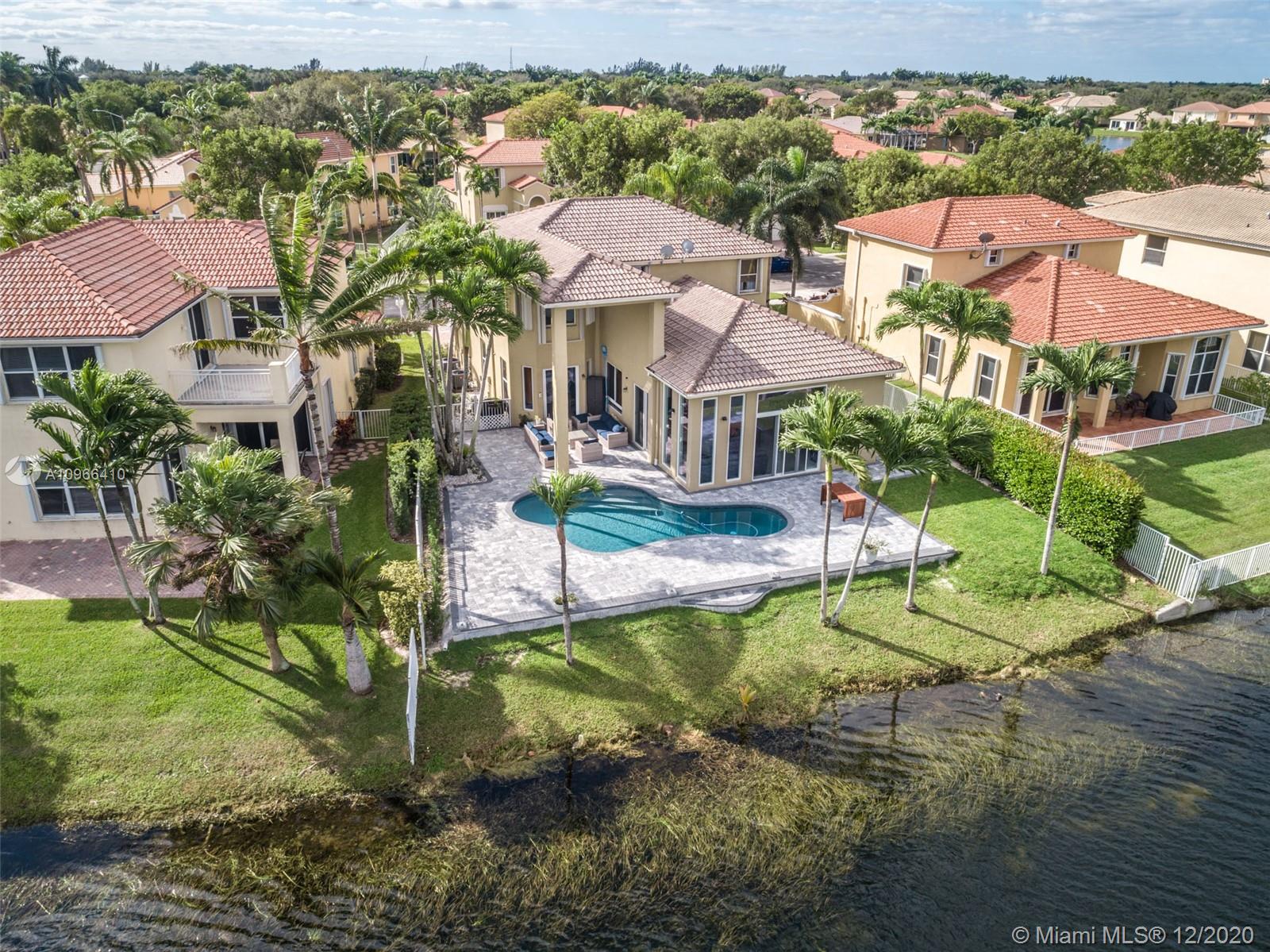 Enjoy outdoor living & beautiful water views - your own private oasis! This gorgeous, gated community home, features 5 bedrooms, 3 bathrooms, an open concept layout with tile flooring throughout spacious living areas and high volume ceilings - perfectly light & bright! The generously sized kitchen showcases designer concrete countertops, large walk-in pantry and newer stainless steel appliances. Enjoy amazing water views, an extended covered patio perfect for BBQ, large oversized yard & sparkling pool, this home is ready for entertaining! Impact windows on first floor & accordion shutters on second floor. Over $90,000 in upgrades await you! Contact me for a full list of upgrades. Great location close to excellent schools, shopping, dining, parks, highways & transportation!