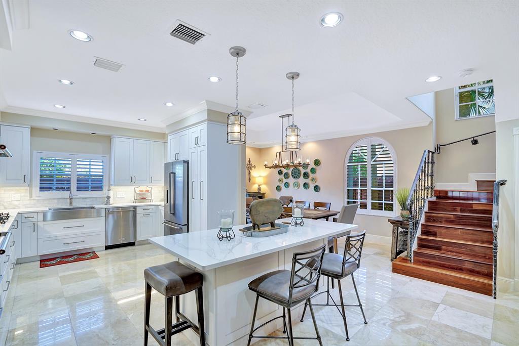 The thoughtful design and premium finishes make this completely remodeled 4br/2.1ba a must see. The first floor consists of an open-concept living space and new gourmet kitchen featuring quartz countertops, marble backsplashes and an oversized island. These are complimented by stainless steel top-line appliances and solid maple white shaker cabinetry. Venture upstairs guided by the designer hand-forged iron railing to find the spacious master bedroom, walk-in California Closet & remodeled bathroom featuring expanded double shower and quartz countertops. The professionally landscaped, expanded terrace, remodeled guest bathroom, plantation shutters, high hat lighting, front-loading washer/dryer and central vac system are just some of the other standout features of this gorgeous home.