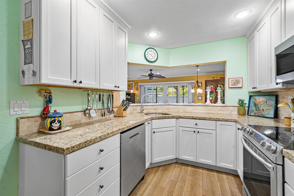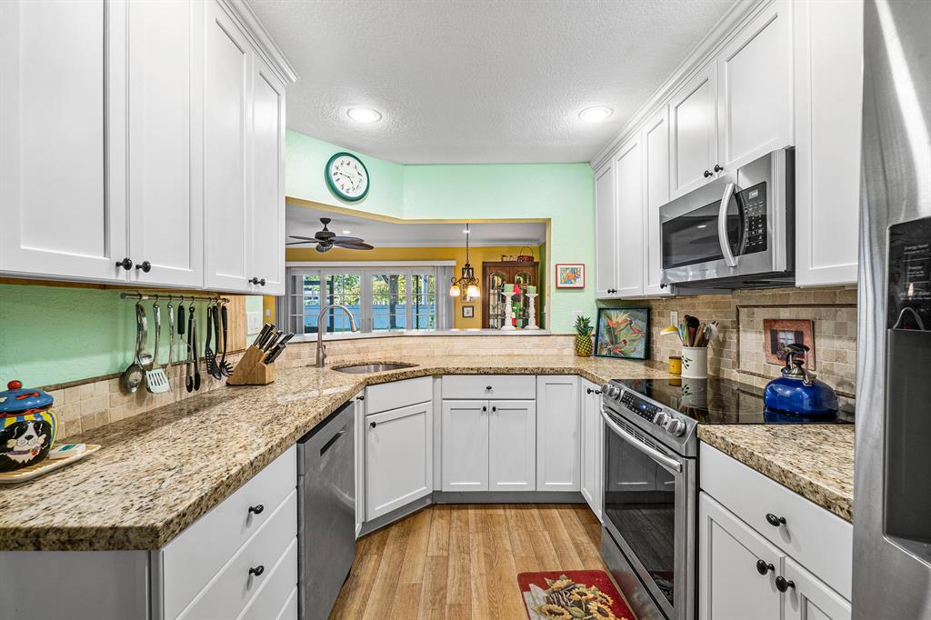 • Интерьер:ClosetCabinetry, EatinKitchen, FrenchDoorsAtriumDoors, GardenTubRomanTub, HighCeilings, LivingDiningRoom, Skylights, WalkInClosets