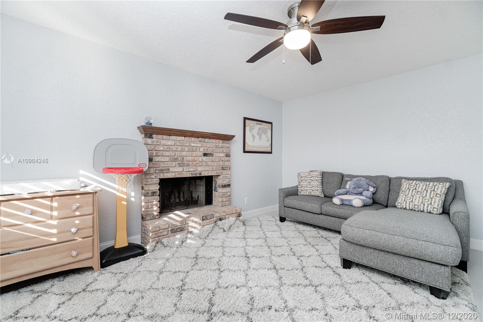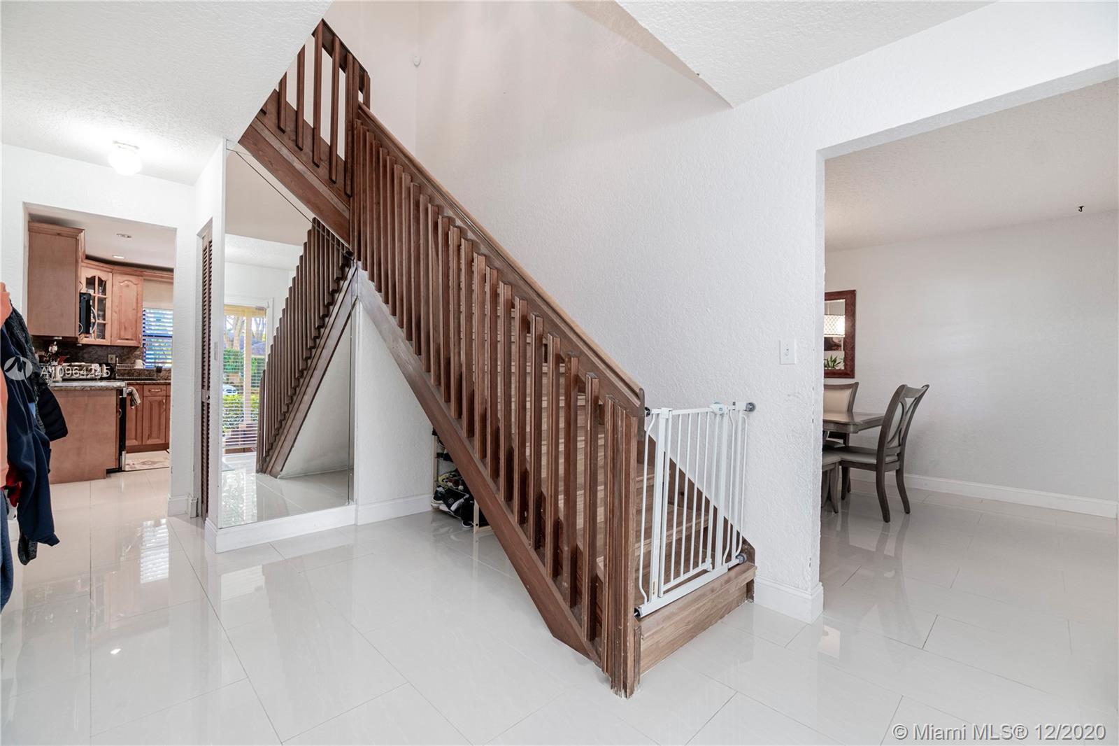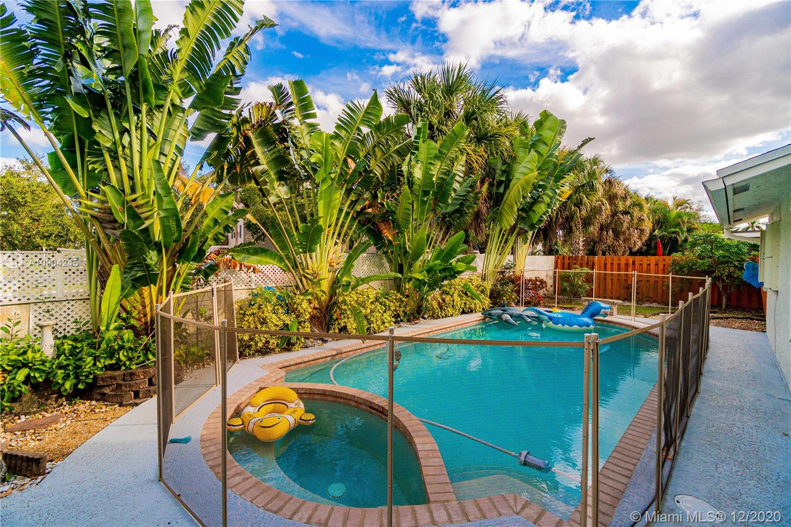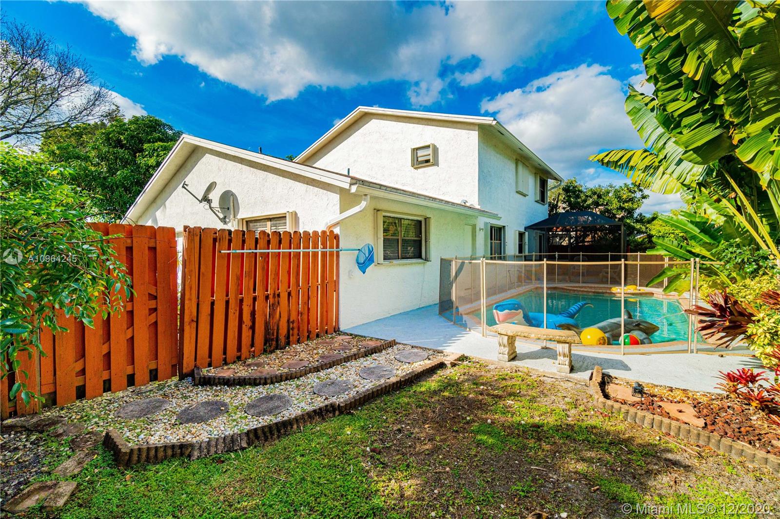 This beautiful home has 5 massive bedrooms (one downstairs and 4 upstairs), 3 full bathrooms (one cabana bath downstairs), gorgeous plantation shutters (2019), SS appliances, a new pool pump (2020), glossy porcelain floors throughout the entire downstairs (2017) and laminate upstairs, and all bathrooms are remodeled (2019). Home gets tons of natural light, has a fireplace for holiday memories, is surrounded by fruit trees (mango & avocado), and sits on a cul de sac with friendly neighbors. The Canterbury community is located directly across from the new Plantation Walk! Everything you need is walking distance. This won't last! Oven will be replaced with a similar model stainless steel oven prior to closing. refrigerator in garage does not come with the sale.