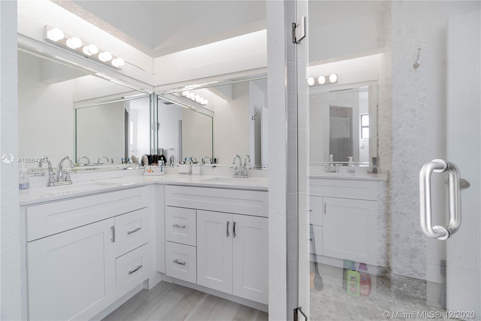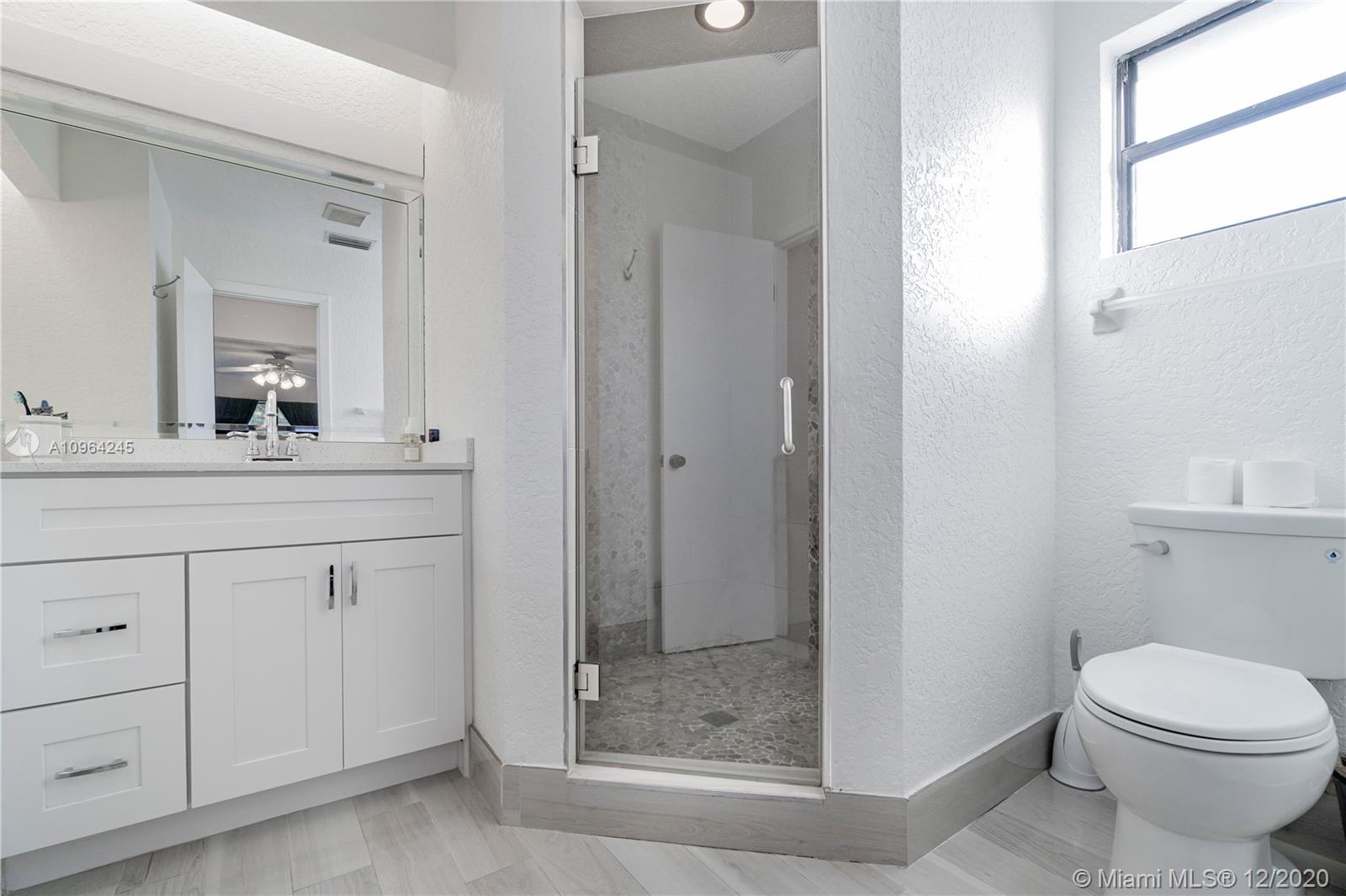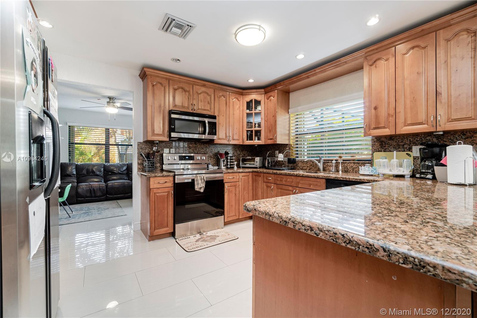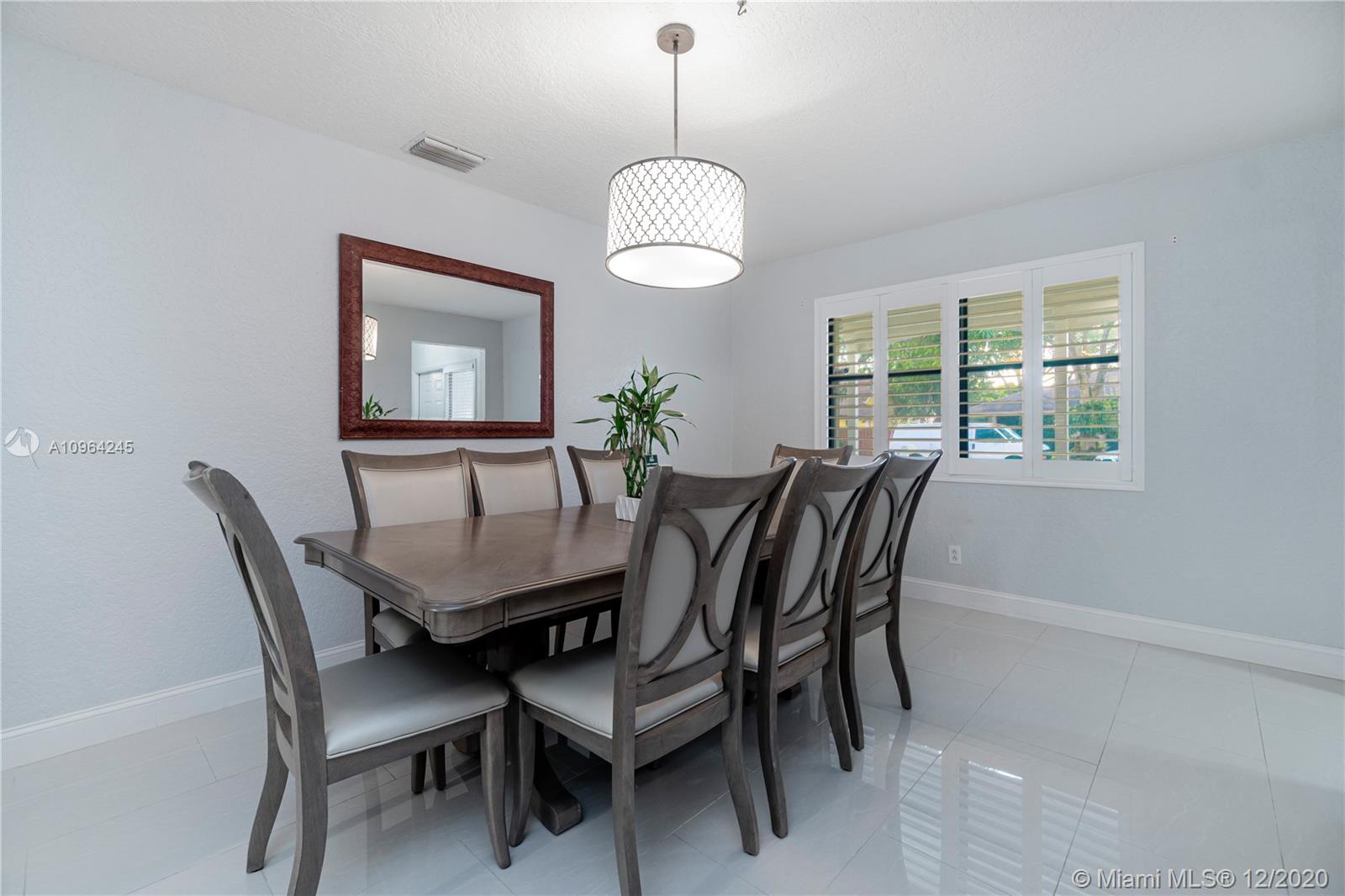 This beautiful home has 5 massive bedrooms (one downstairs and 4 upstairs), 3 full bathrooms (one cabana bath downstairs), gorgeous plantation shutters (2019), SS appliances, a new pool pump (2020), glossy porcelain floors throughout the entire downstairs (2017) and laminate upstairs, and all bathrooms are remodeled (2019). Home gets tons of natural light, has a fireplace for holiday memories, is surrounded by fruit trees (mango & avocado), and sits on a cul de sac with friendly neighbors. The Canterbury community is located directly across from the new Plantation Walk! Everything you need is walking distance. This won't last! Oven will be replaced with a similar model stainless steel oven prior to closing. refrigerator in garage does not come with the sale.