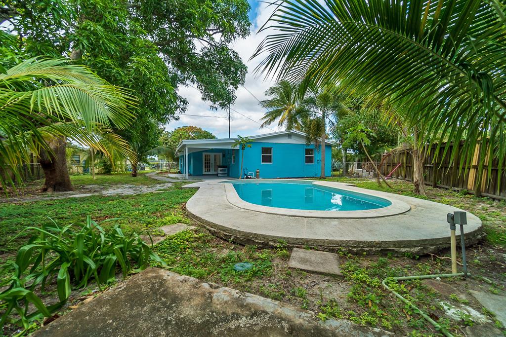 Completely remodeled Single-family home, new roof, freshly painted, New kitchen with quartz countertops. New Tile floors, tankless water heater. Updated Bathrooms with quartz countertops. Large patio with a perfect size pool. Mango and papaya trees in the backyard.