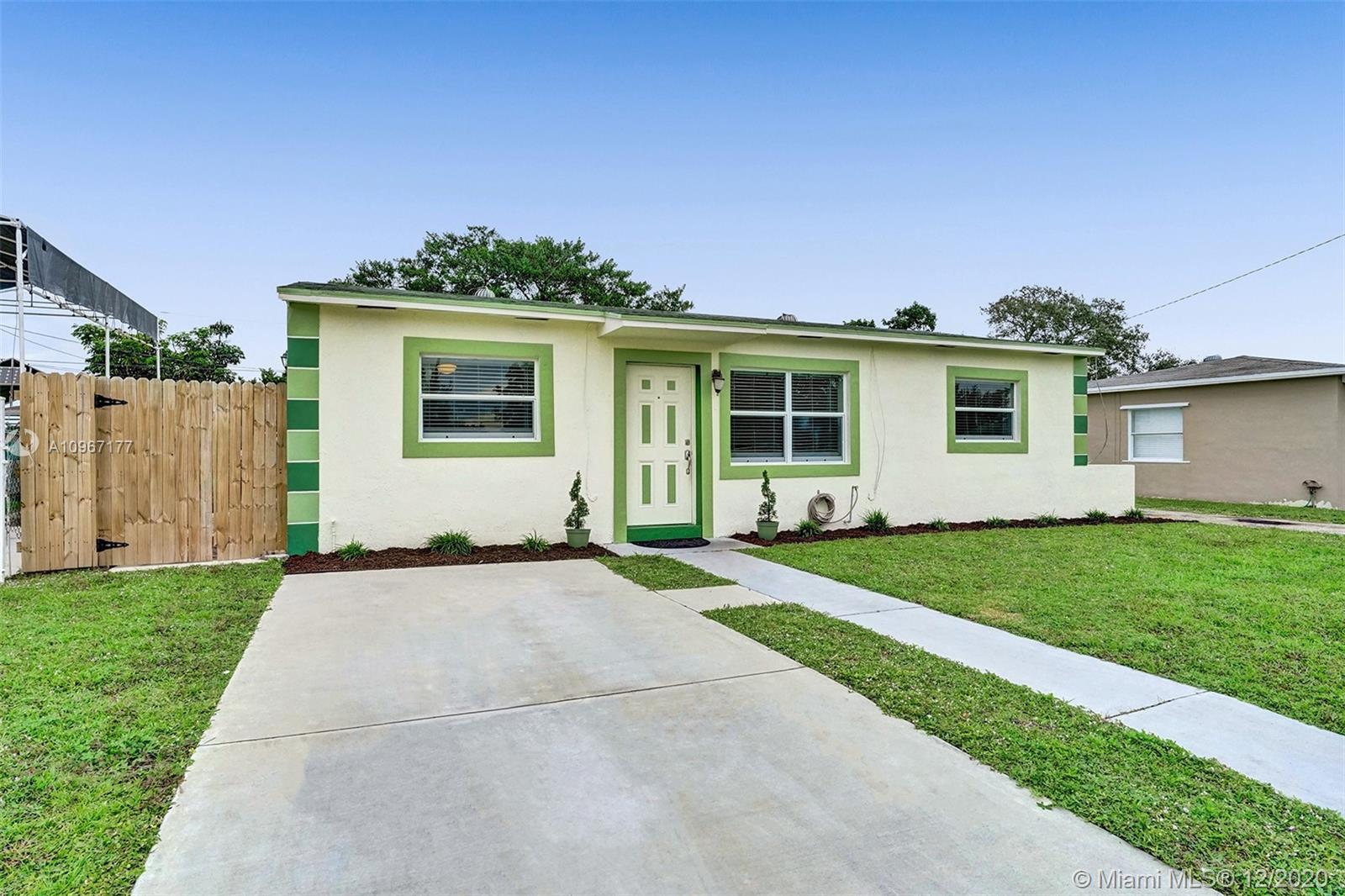 Fantastic 3/2 in the city of West Park on an oversized lot. This home features beautiful porcelain floors, newer bathrooms finishes and kitchen with granite counter tops. Separate laundry room with lots of storage, lots of parking space, shed,an enormous fenced in back yard can fit a pool and great for outdoor entertaining. Close to I-95, shopping, dining, schools, Aventura Mall, Gulfstream, Hardrock Staduim and Fort lauderdale airpot.