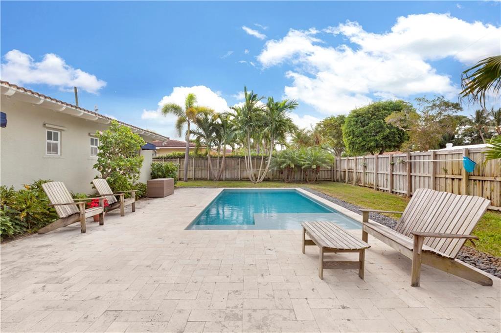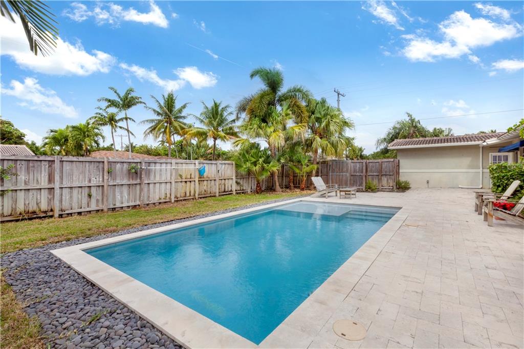 Enjoy the tropical lifestyle nestled behind a privacy fence and landscaping. This bright open ranch home is situated on a corner lot and boasts a large yard that frames the sparkling pool with a sun shelf and patio area. This residence offers vaulted ceilings through out most of the home and a great room with walls of windows on both east and west sides. An additional bonus room could be used as a home office. Both bedrooms have original bathrooms and overlook the pool area. This home is perfect for those looking to update and customize in E. Fort Lauderdale's Poinsettia Heights. Minutes to shopping, gyms, paddle boarding, kayaking, boating, restaurants & Ft. Lauderdale Beach. Sq. ft. from IMAPP.