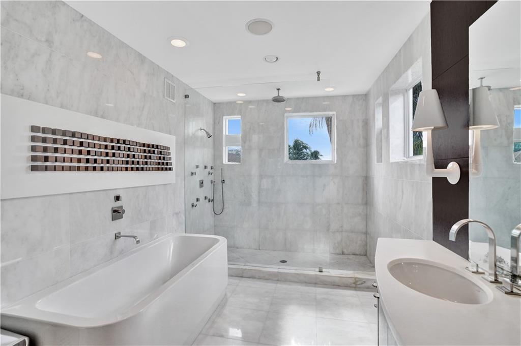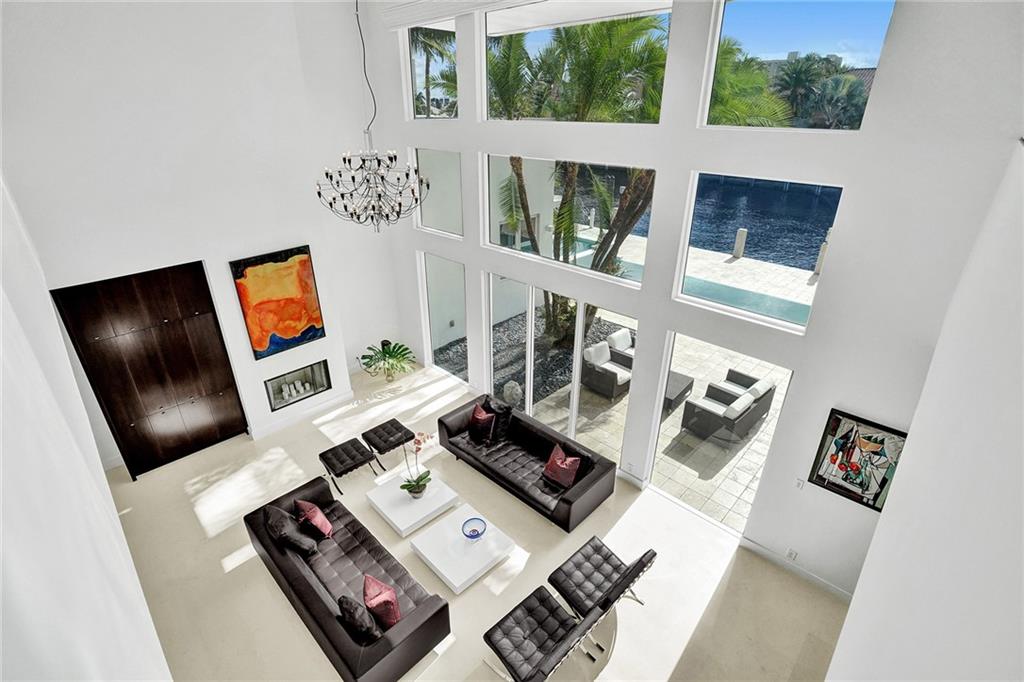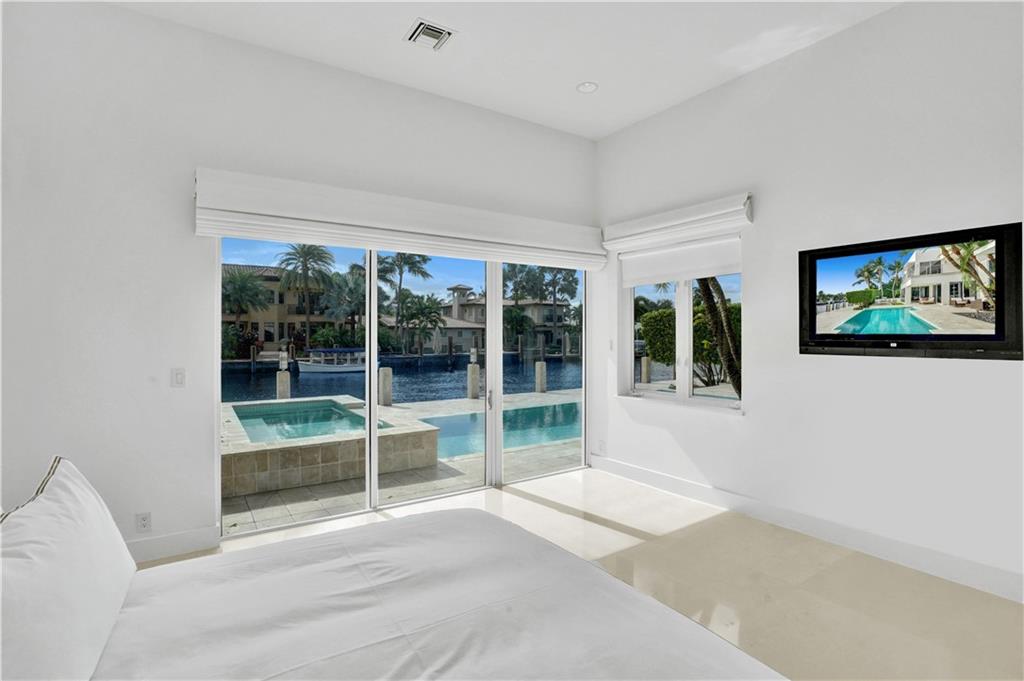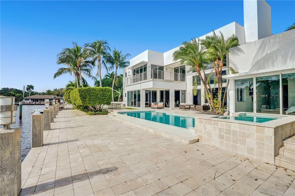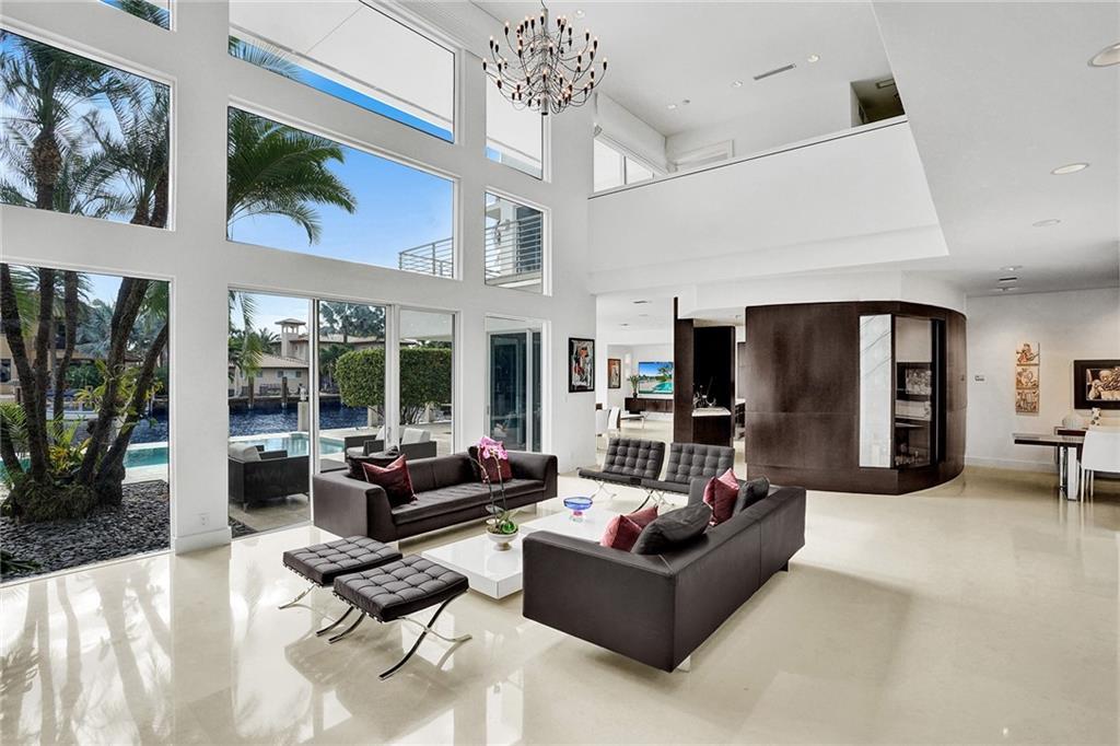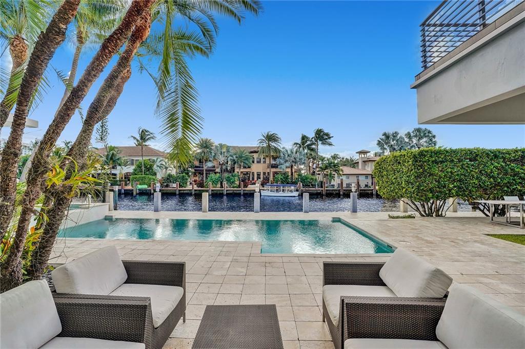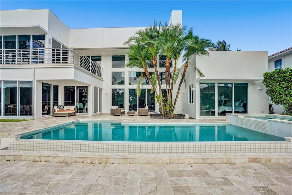 Stunning 5 bedroom waterfront estate in Coral Ridge Country Club. 100’ waterfront on a wide waterway (115’ across) with no fixed bridges and ocean access. Gourmet kitchen with gas range, wine cellar, volume ceilings in living room, impact windows and doors, marble flooring on the first floor and wood flooring upstairs, recessed lighting and more. Upstairs master suite features two walk-in closets, spa like bath and expansive patio with tranquil water views. All bedrooms en-suite (2 bedrooms on first floor including junior master). Outdoor living with pool, spa, summer kitchen and 100’ concrete dock. Southern exposure for the best breezes and sun.