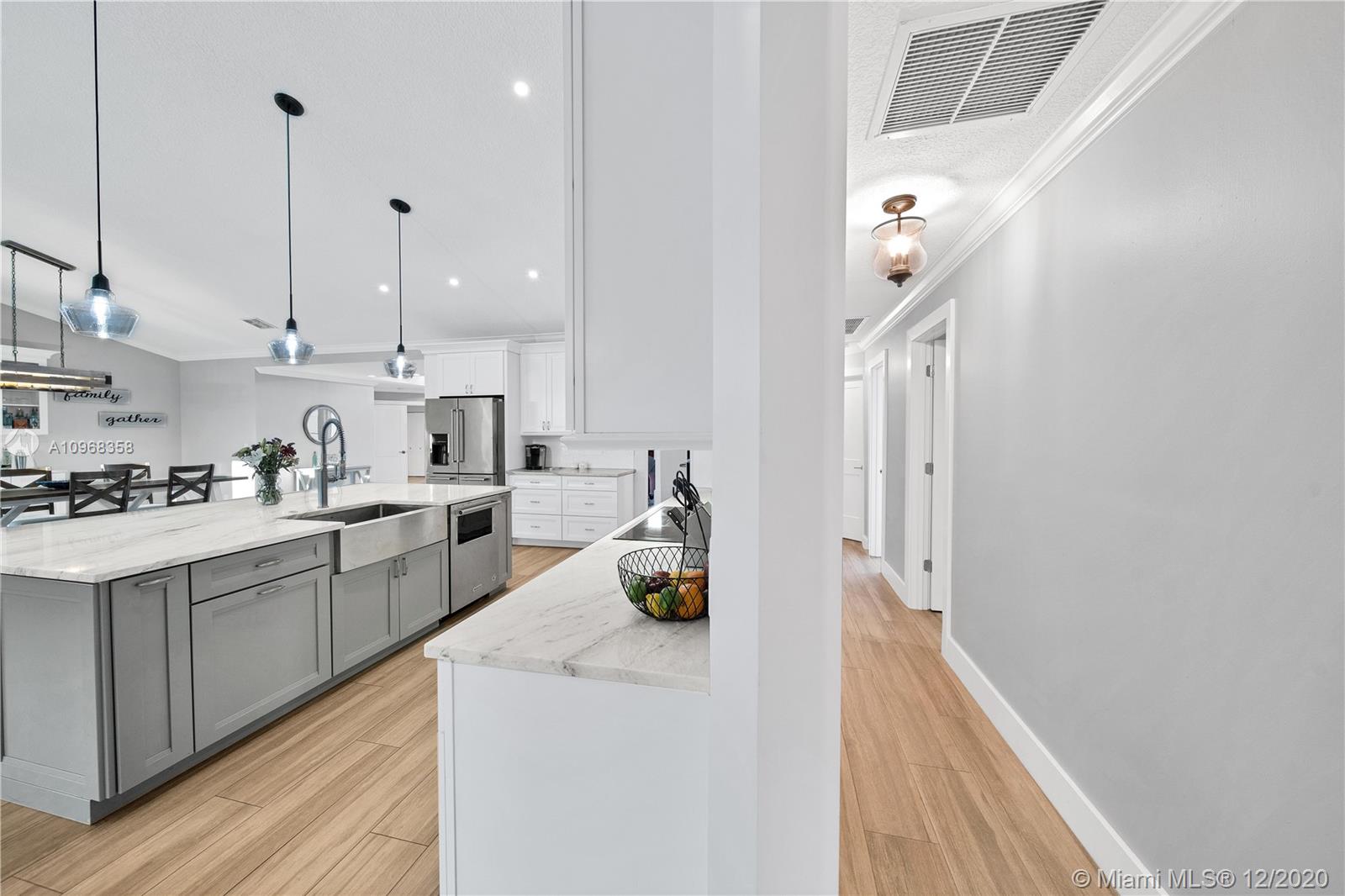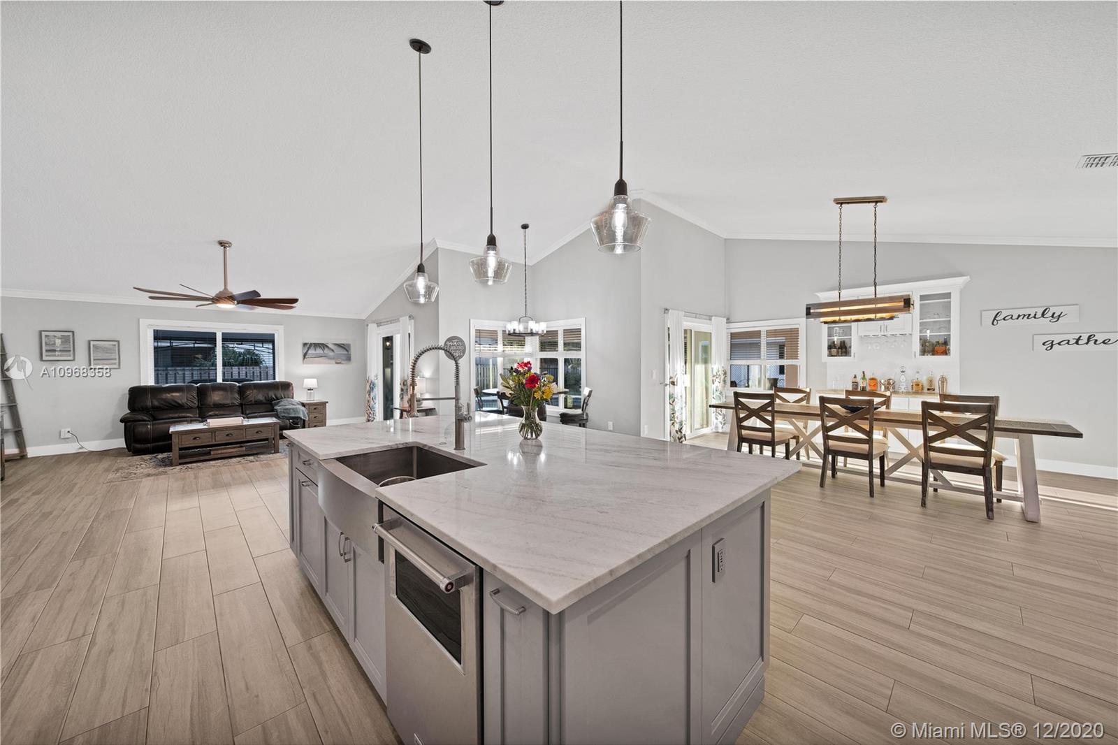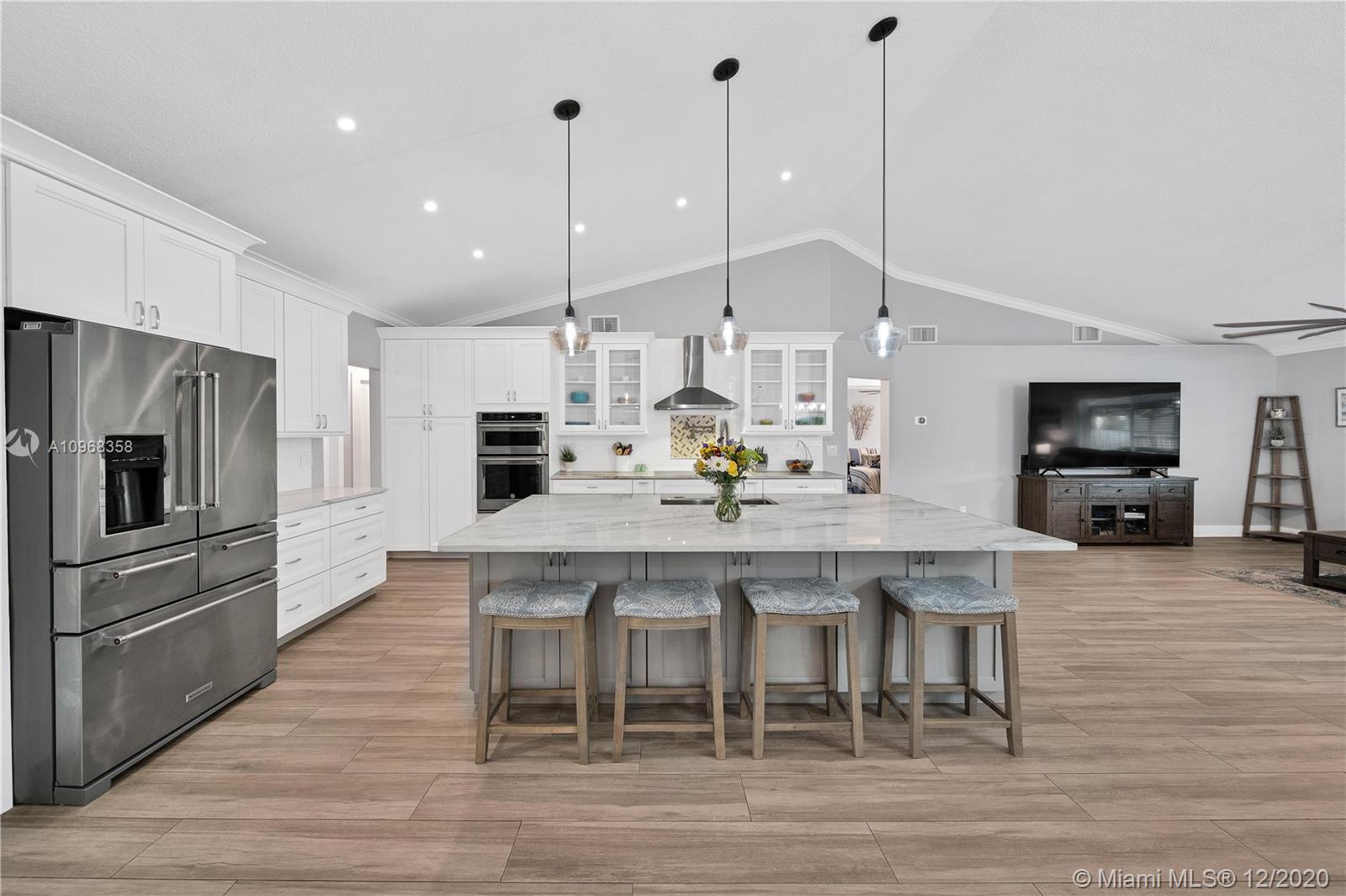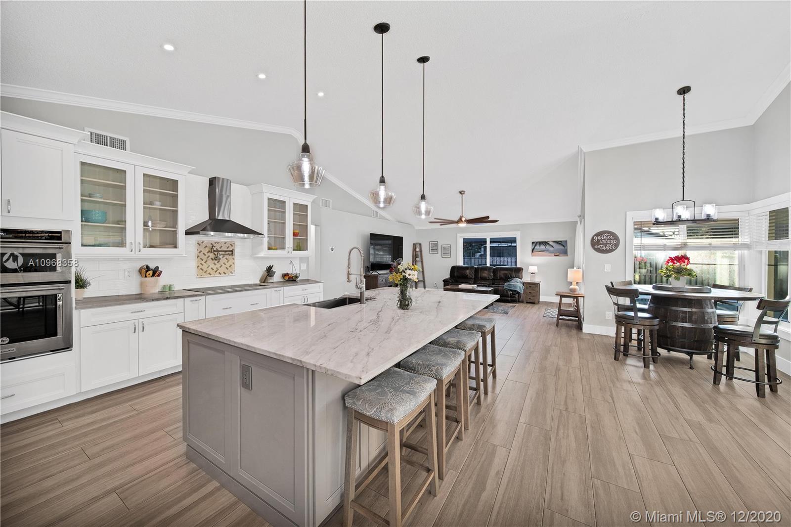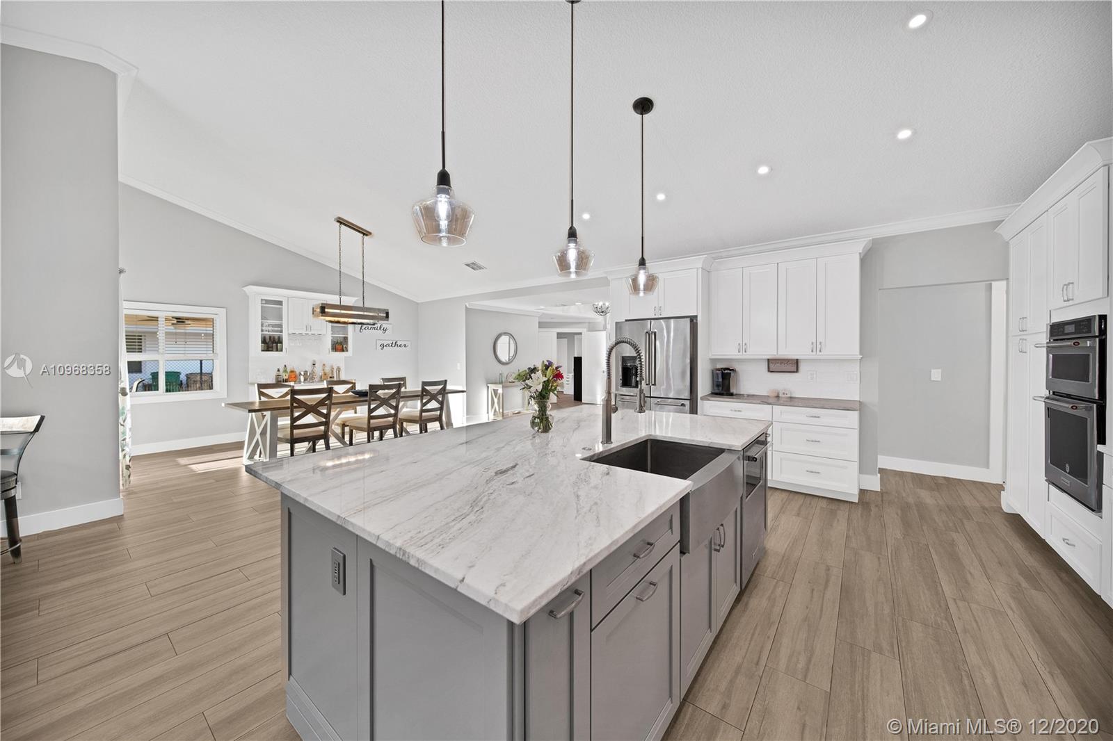 Magnificent, massive Forest Ridge beauty! Completely renovated with outstanding gourmet kitchen featuring huge island, stainless farmer's sink and deluxe appliances, stone counters, & maximum storage. Open floor plan with vaulted ceilings. New IMPACT WINDOWS & doors. New wood-look ceramic flooring. Newer A/C. Master suite has tray ceiling, access to pool & patio, and a fabulous bath with dual sinks, big shower, and lovely round free-standing soaking tub. All closets have organizers. The 5th bedroom, adjacent to master, is currently used as office but could easily be a nursery. Lengthy pavered driveway can hold 6 cars. There's a huge 732 sq. ft. stone covered patio, pretty pool, fenced yard. No polybutylene pipes. EXCELLENT SCHOOLS. Most attractive community entrance in Broward!
