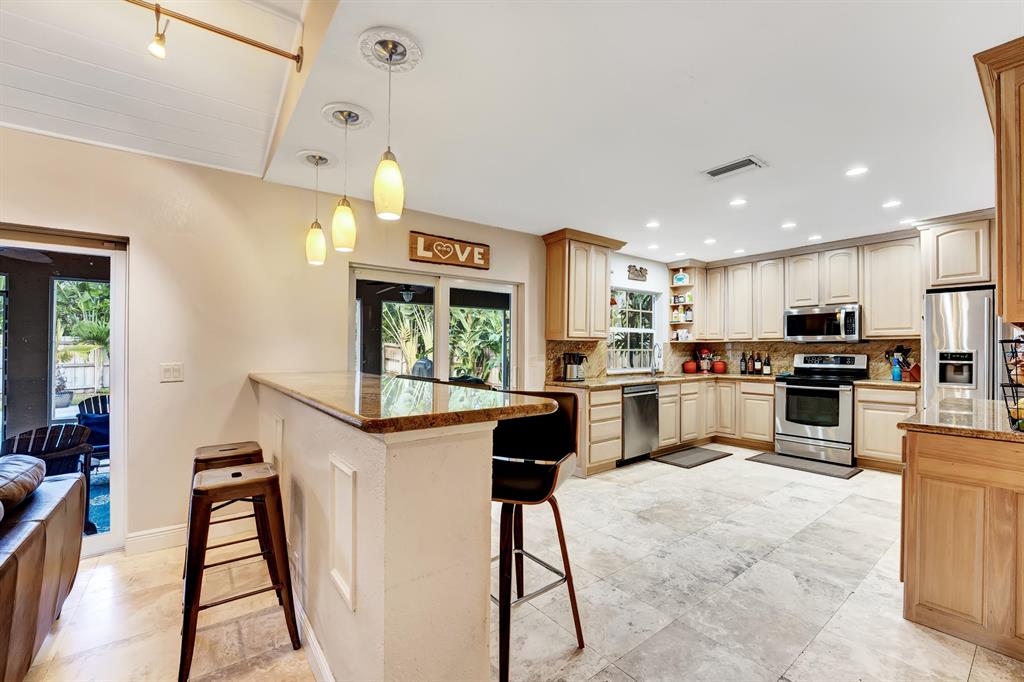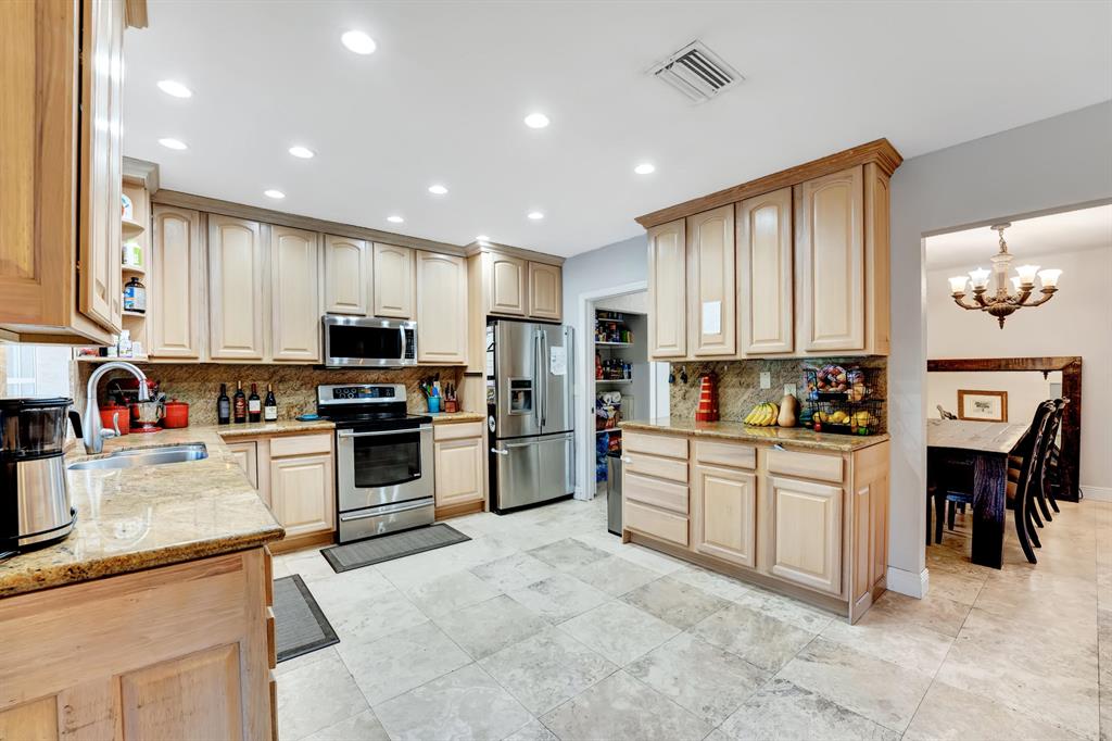 Situated on a gorgeous, park like setting, private lot in Boca's highly desirable Boca Alta development. Great Kitchen space with breakfast bar, travertine flooring, open to family room with fireplace, large laundry with pantry, formal dining room, 3 graciously proportioned bedrooms, including a master with large walk-in closet, huge shower, floating tub and dual basins in both bathrooms, all over looking a covered screened lanai with skylights and resort style salt water pool. Two car garage with extra storage, plus a full house generator with a 500 gallon tank and a newer a/c. Great location close to restaurants, 10 minutes from the beach and 5 minutes to Mizner or Town Center Mall.