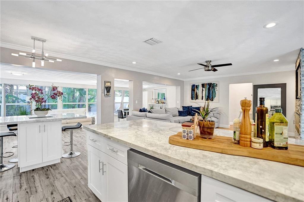Absolutely stunning fully remodeled home in Coral Shores, one of East Fort Lauderdale's most desirable neighborhoods! This gorgeous home boasts a contemporary open floor plan with tons of windows and natural light. It's designer finishes include light grey wood-look porcelain tile throughout, distinctive quartz tops with glass subway tile backsplash, white shaker cabinetry, over-sized island, Italian-imported laminate lacquer bathroom vanities, marble showers & frameless glass doors! The fully fenced backyard and pool area is lined with mature landscaping, offering complete privacy. Coral Shores is a small secluded community surrounded on three sides by water. This incredible location is a mile to the beach with easy access to 95 and minutes to shops, restaurants and Wilton Drive.