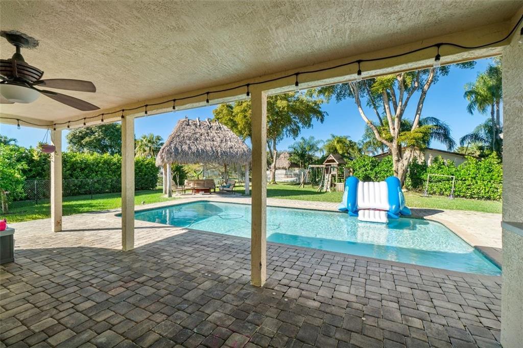 THIS IS A MUST SEE! Beautifully appointed 4-bedroom, 2-bathroom POOL home with IMPACT WINDOWS! Welcome home to your COMPLETELY REMODELED and OPEN FLOOR PLAN, located on a HUGE CORNER LOT in The Lakes Incredible features include a GORGEOUS NEW KITCHEN w/ GRANITE COUNTERS, S/S APPLIANCES, LARGE ISLAND, plus a DRY BAR * Polished TERRAZZO FLOORING throughout w/ wood laminate floors in master bedroom * Gorgeous REMODELED SPA-LIKE BATHROOMS, both w/ ACCESS TO PATIO & POOL * Enjoy relaxing by your oversized pool w/ plenty of room in the private fenced yard for fun * almost 1/3 of an ACRE * WATERFRONT with your TIKI HUT, PERGOLA and a COVERED PATIO * BUILT-INS IN ALL CLOSETS * LED LIGHTING * FRUIT TREES & ORCHIDS * NEW ROOF 2018 * A/C 4-YRS. * W/H 2-YRS. * NO HOA * and a Perfect Central Location!
