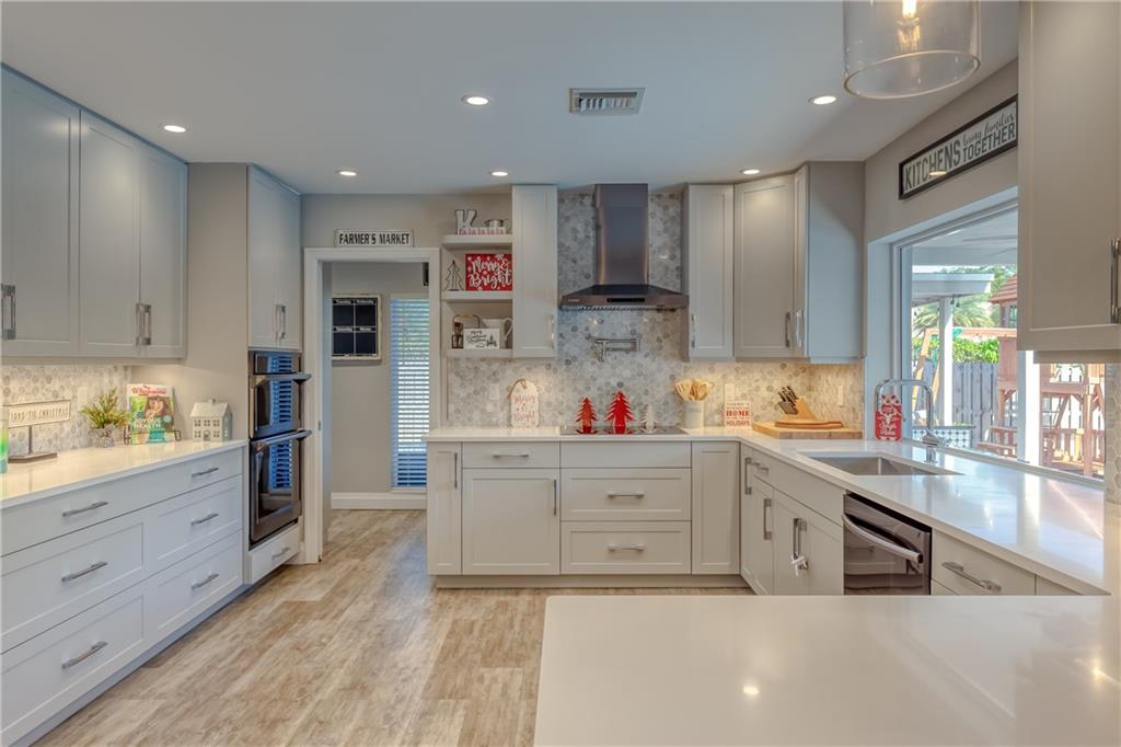 Enjoy this Show Stopping corner lot home in the heart of Boca Raton. This farmhouse style home has been renovated from top to bottom & boasts lots of custom details. Open concept living makes this home and entertainers dreams! The beautiful chef's kitchen offers grey wood cabinets, Samsung appliances, Quartz counters, double ovens & Marble hexagon backsplash. Each bedroom is spacious & has custom built-in closets. This home has been renovated down to the studs & has been fully rewired, has a new roof, impact windows & doors, new duct work & AC, insulation, new plumbing & more! Enjoy entertaining in this huge fenced backyard with 2 large covered patios, summer kitchen, new pavered patio & saltwater pool. The huge turf yard is perfect for playing & has massive side yard with double gates.