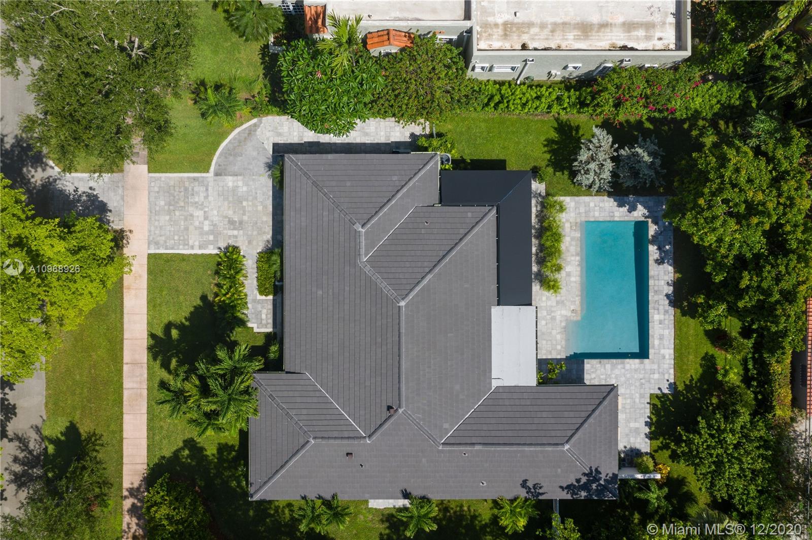 Rarely available, beautiful totally renovated-like new property on large, corner double lot in desirable Coral Gables. Over $440,000 worth of renovations/additions. Large rooms are embellished with abundant natural daylight - the open floor plan allows for direct views of the oversized Pool and surrounding exterior al fresco living covered Terrace surrounding lush landscaping. Completely remodeled to the studs by world recognized interior designer/architect has no detail spared. Italian porcelain floors, European custom kitchen with custom cabinetry with built in wine cooler, Oversized 1.5 air conditioned garage. Open floor plan-all bedrooms are en suite, living room with electric shades, master bedroom w/recessed ceiling with spectacular cove lighting. The perfect Coral Gables home.