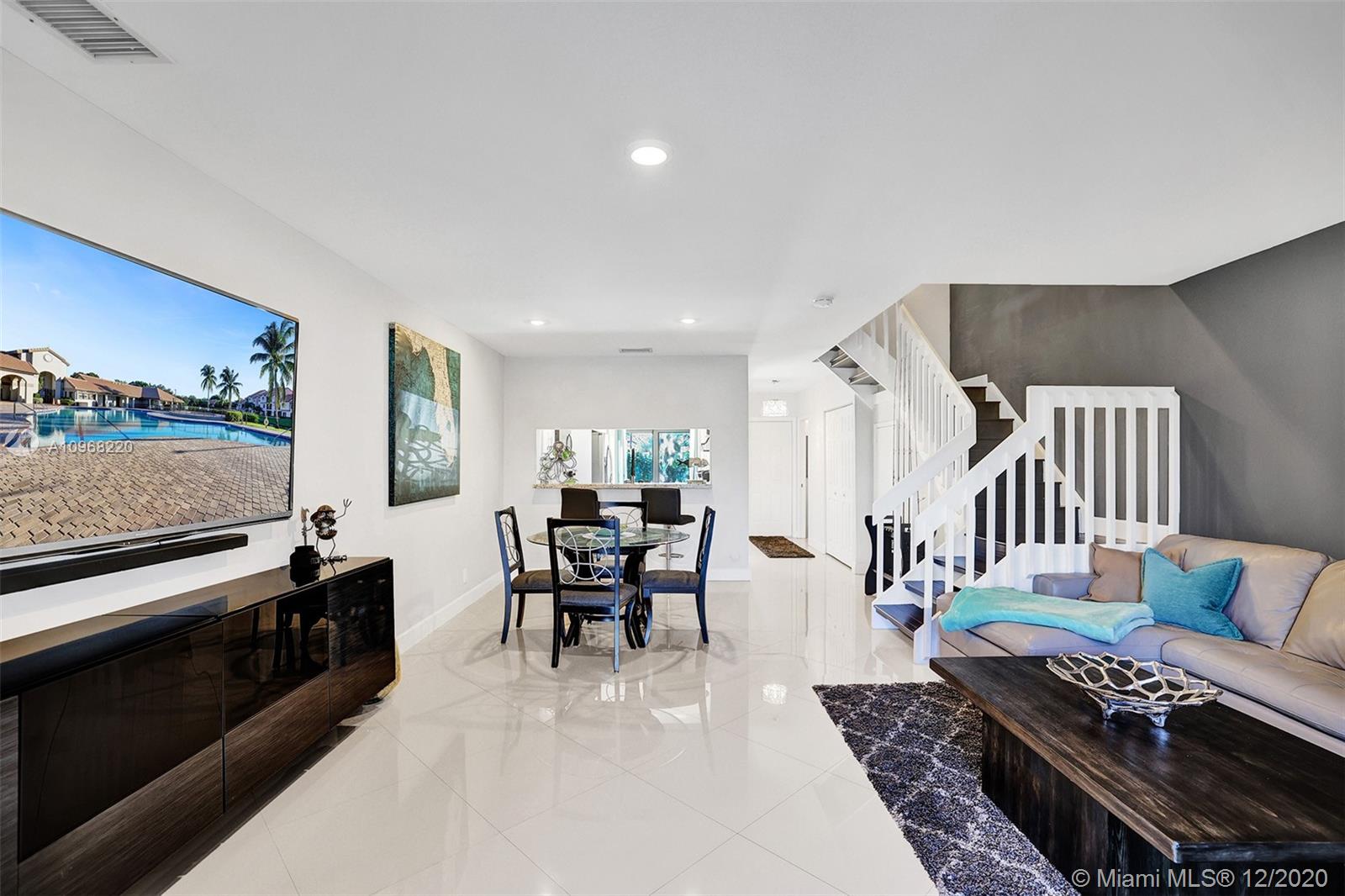 Beautifully remodeled home from top to bottom. This home has it all and was just recently remodeled this year. Large tile flooring throughout the first floor and wood flooring as you go up the stairs to the second. Fully updated kitchen with brand new appliances. This home many upgrades to list from the new washer/dryer, new appliances, AC, hurricane impact windows, recessed lighting, reverse osmosis filtration system, new screening just installed, as well as new roof & gutter system, and private storage. This home is truly set up for the buyer that is ready to move-in without any work needing to be done except your personal touches. Close to all restaurants, stores, mall(s), Highways for commute to work and more. Community offers Pool area play area for children, outside park for all.