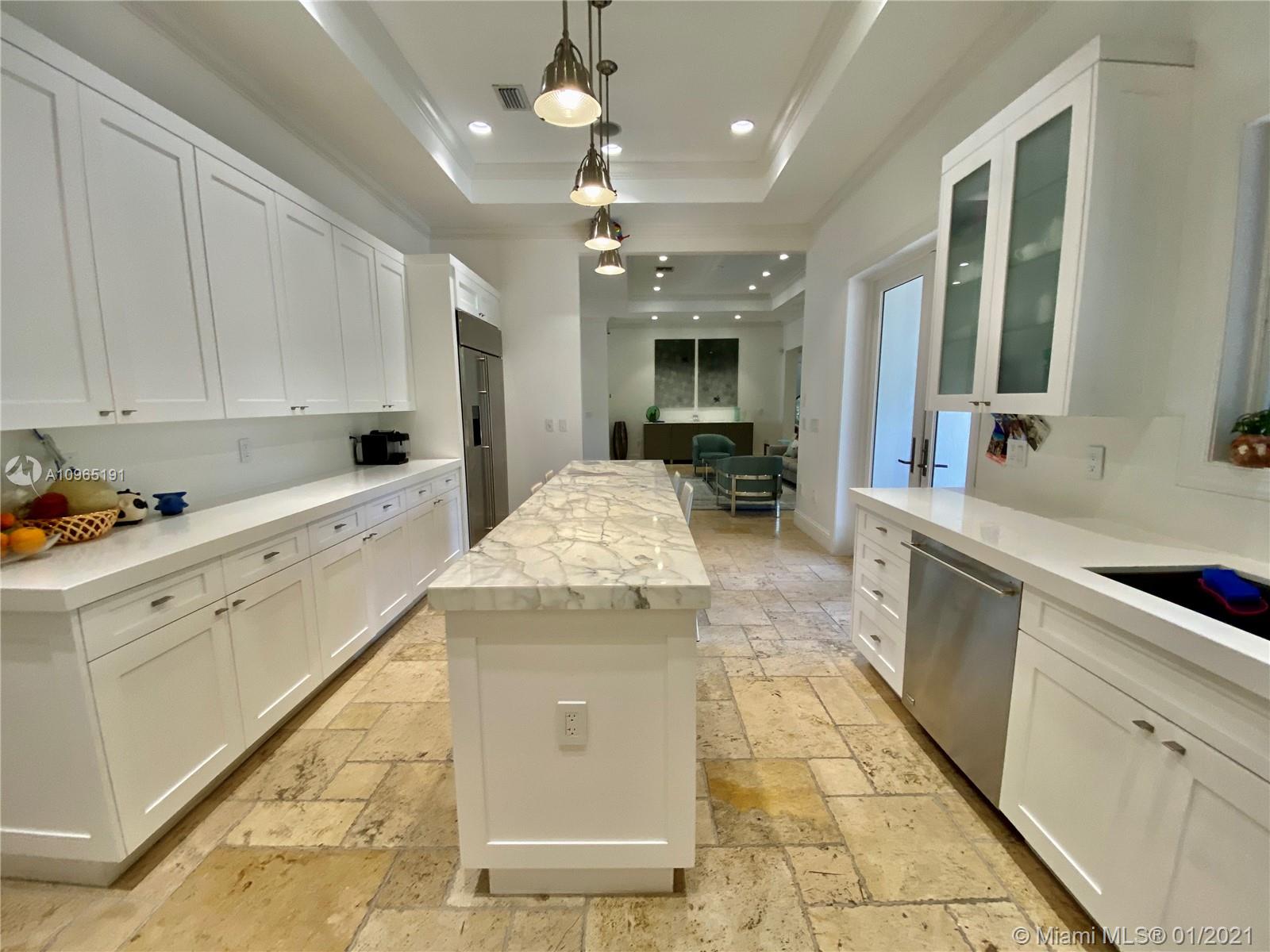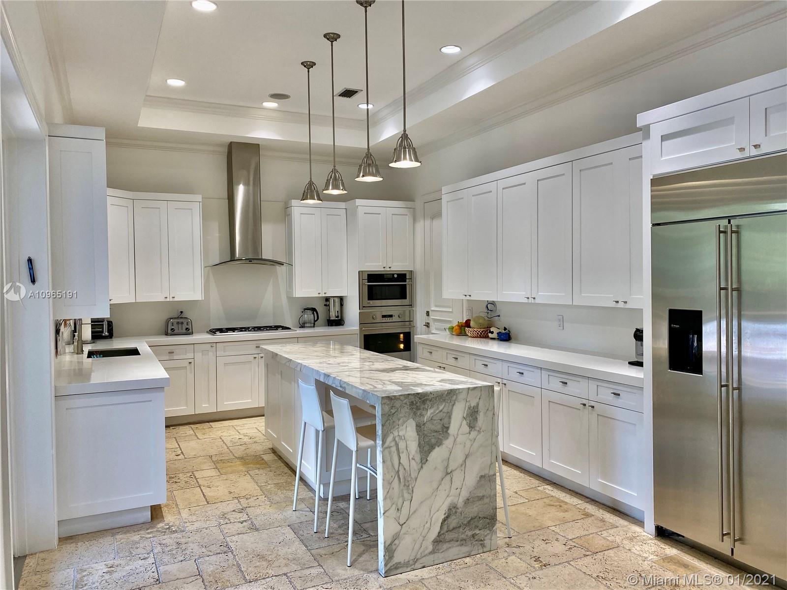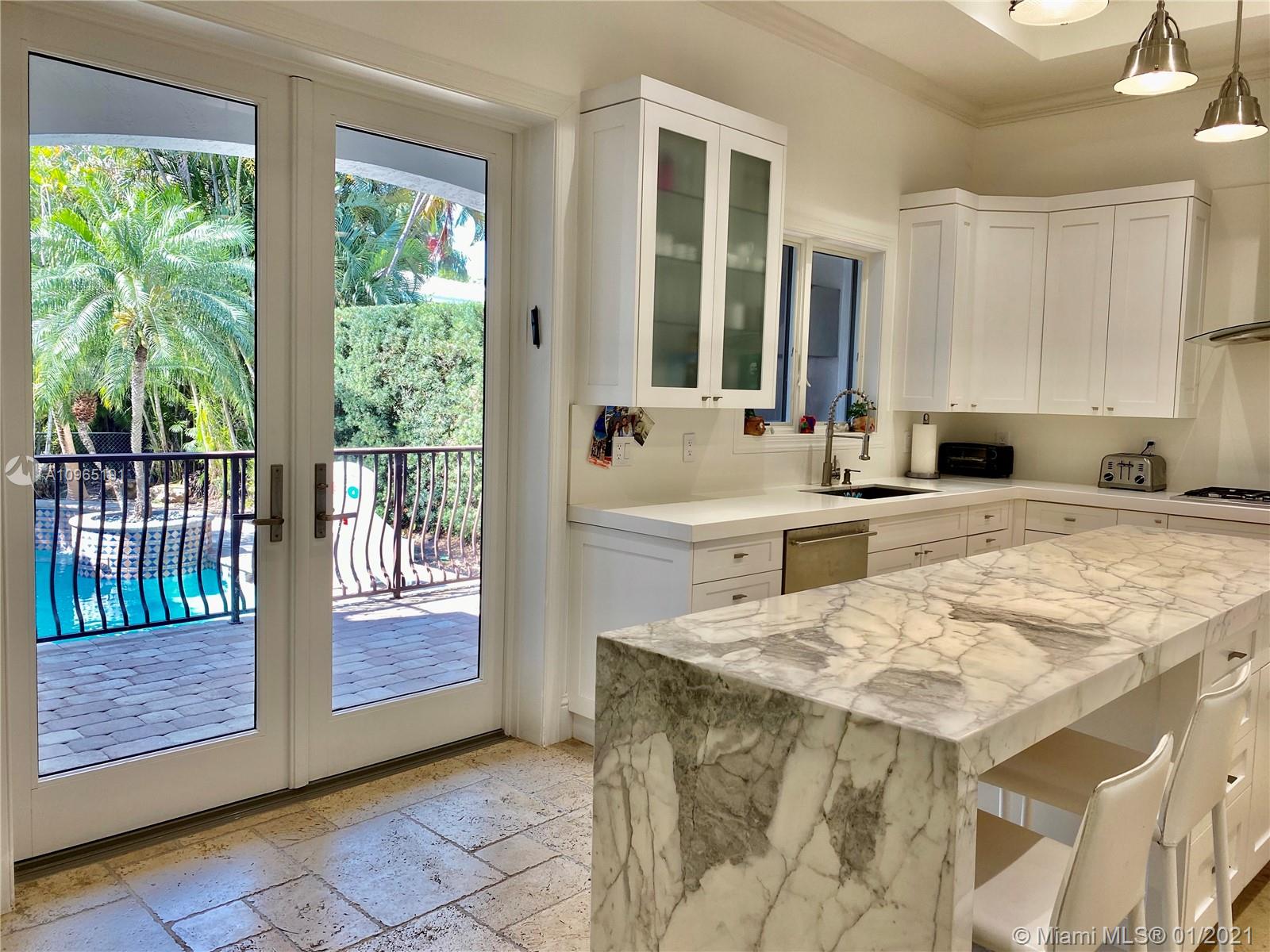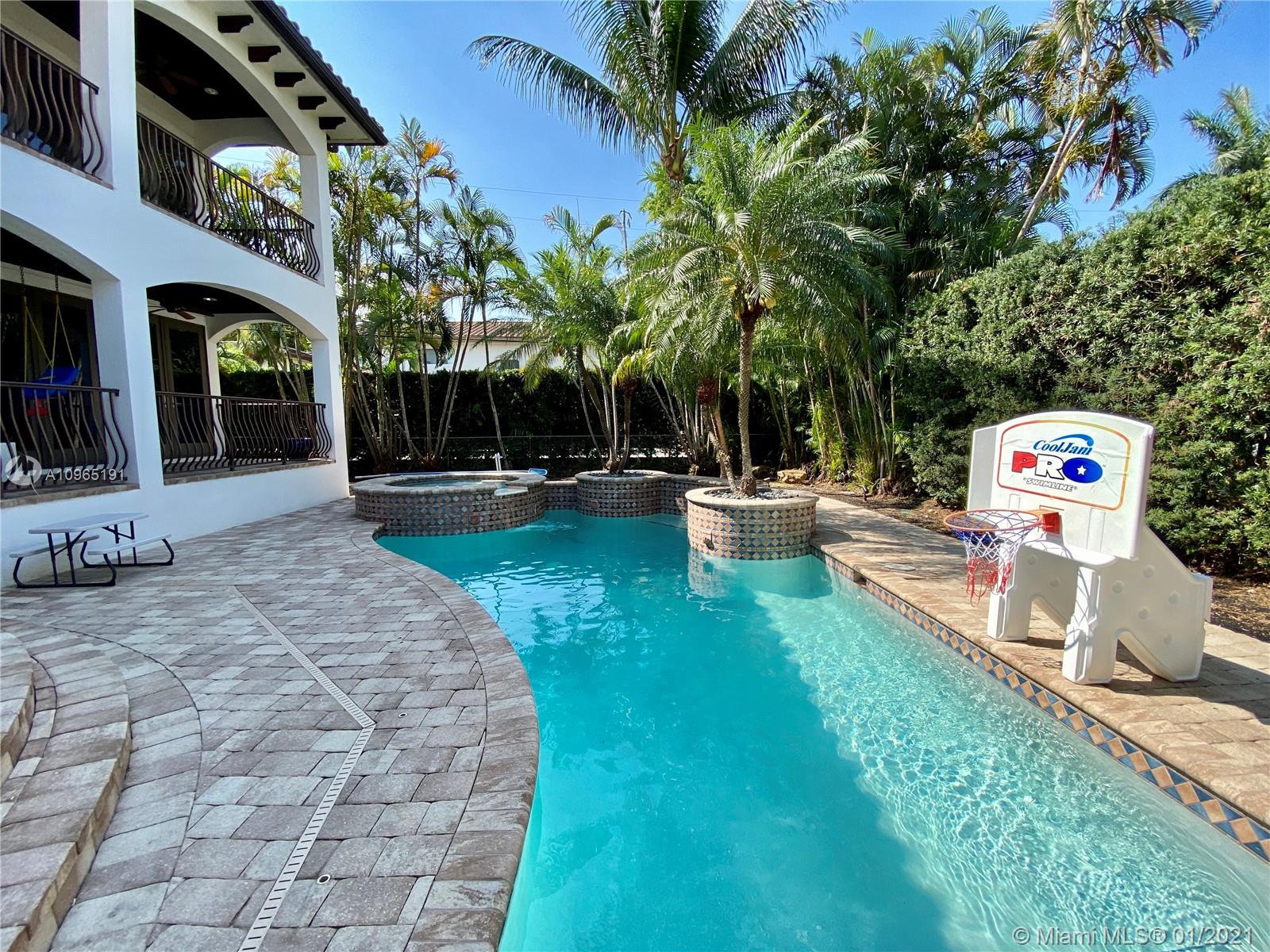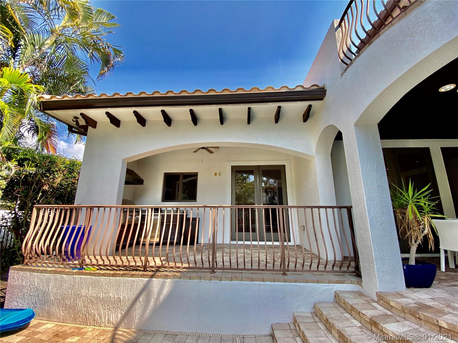 Located on special South Side of Bay Harbor Island’s. This is a stately residence with great floor plan. Option for the primary suite to be upstairs or down stairs, both overlooking heated pool/jacuzzi & grand patio area with fully equipped summer kitchen & covered terrace. For those looking to escape and find a private oasis with outdoor space...this is it. All rooms lead to outdoor entertainment areas. If you choose to spend your time inside...plenty of options: living room with built-in bar; kitchen with gathering area; or, relaxation in expansive family room. Other features include high ceilings, natural gas, 2 car garage, security system, surround sound, hurricane impact windows. Located in A+ school district, blocks from beach, fabulous restaurants & glamorous shops.