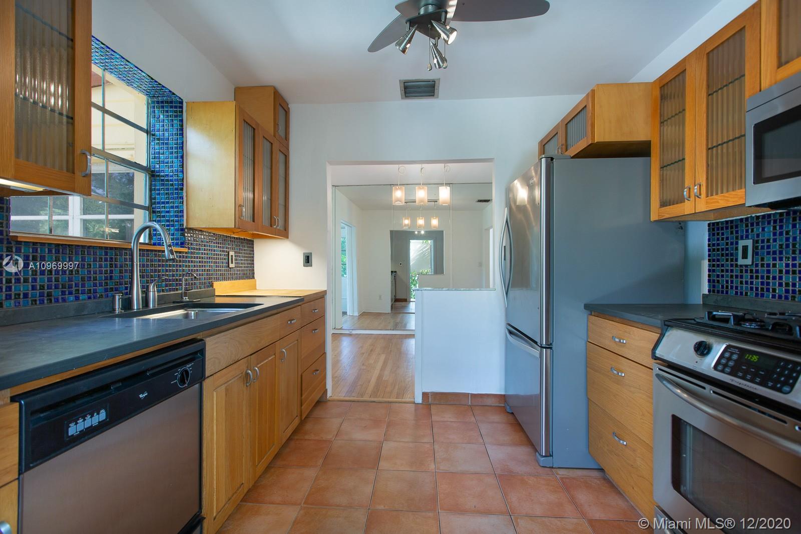 This is the type of charmer Miami Shores is famous for. Three Bedrooms, two baths, plus bonus room off the living room. Beautifully updated kitchen with slate counters, wood cabinets and stainless appliances. The Florida room has windows on 3 sides, beamed ceilings, mosaic tile floors and French doors to a lovely backyard. Freshly finished hardwood floors, fireplace and roof is one year new!! You really have to see this lovely home, on a quiet, beautiful street in Miami Shores.