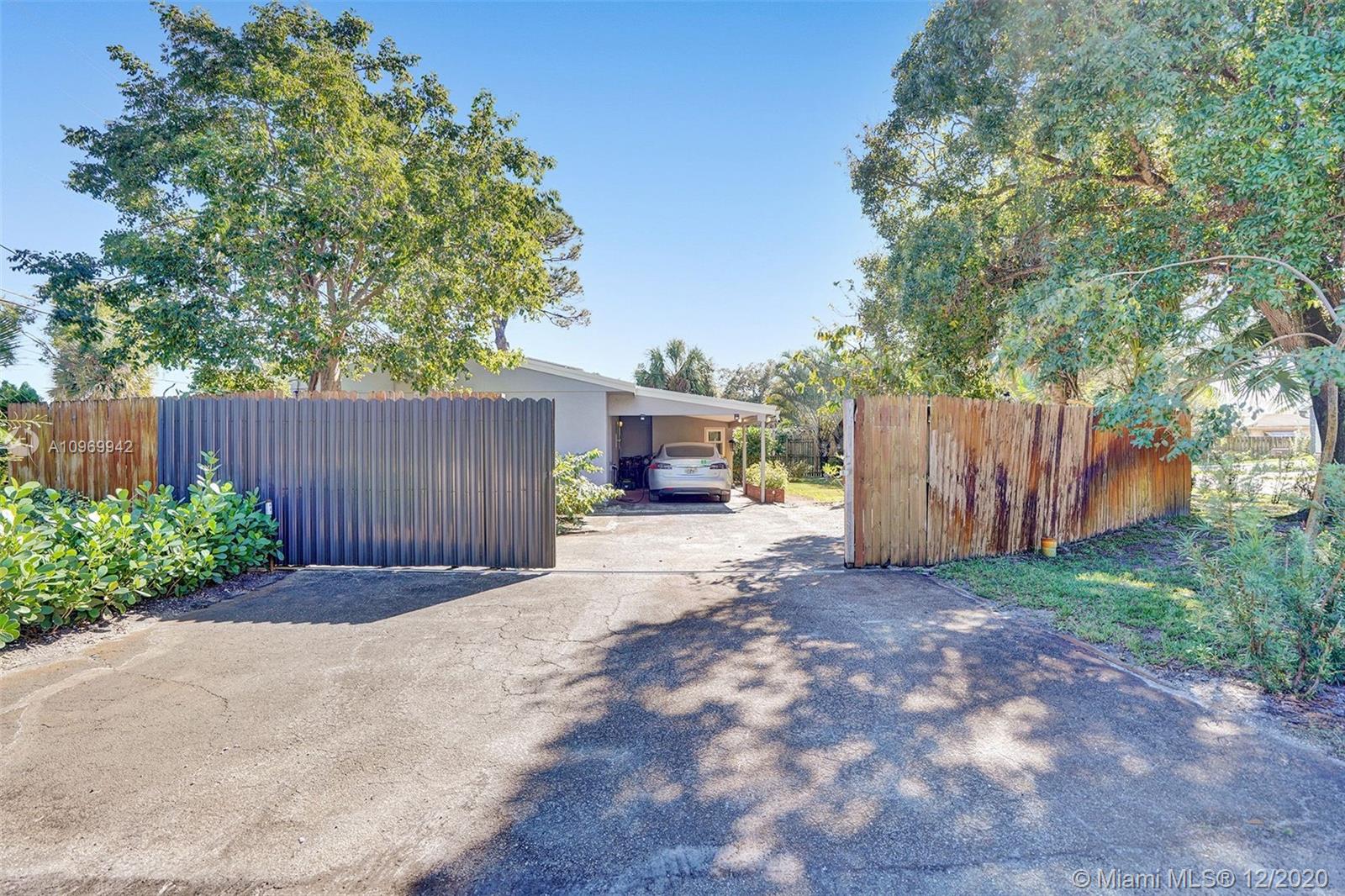 Perfect starter home just outside Downtown Fort Lauderdale. Move-in-ready, freshly painted inside and out with neutral colors. Features updated kitchen and baths. Equipped with solar power, hurricane impact windows, and doors. Newer AC with laser germ killer, Water softener system for drinking, and sprinkler. The sprinkler system operated from a well. All nestled away on a private oversized corner lot. Featuring an inviting tropical backyard; great for entertaining with a lush landscape and a beautiful fountain. Completely fenced for privacy and secured with an automatic gate. Great location: Close to shops, restaurants, and easy access to I95/595/ Turnpike making the commute a breeze. Cozy sunroom with original fireplace. Convenient carport.
