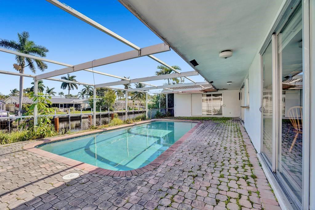 Waterfront pool home in Coral Ridge Isles, walking distance to Pine Crest School. Perfect for investor or renovation. Excellent potential and opportunity. House boasts 2058sf of living area, inclusive of 3BR/2BA/2CG, formal living and dining, eat in kitchen opens to patio, pool and waterfront. 75' waterfront, easy boat ride through neighborhood, four fixed bridges to intracoastal waterway. Limited showings, full price offers will be considered.