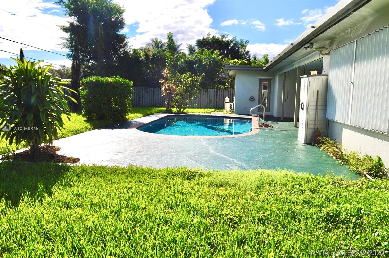 Lots of closets and space! Enormous 4/3 one story. Oversized pool with Spacious Deck for plenty of outdoor: grilling, swimming, playing games, or just enjoying the sun. Two car garage with an added extension for storage. Large Circular Driveway for family and guests. The Double entry doors, foyer, formal dining room. Florida den has the capacity for an indoor bar. Fabulous-sized bedrooms with a massive walk-in closet in Master Bedroom with a giant updated bathroom. All bathrooms are full and updated. Completely renovated sanitary underground pvc pipes. New washer, dryer, motor pool pump, high-efficiency water heater and 2017 installed flat roof. Plantation shutters throughout, crown molding and knock down finish on walls with French doors leading to the outside patio.
