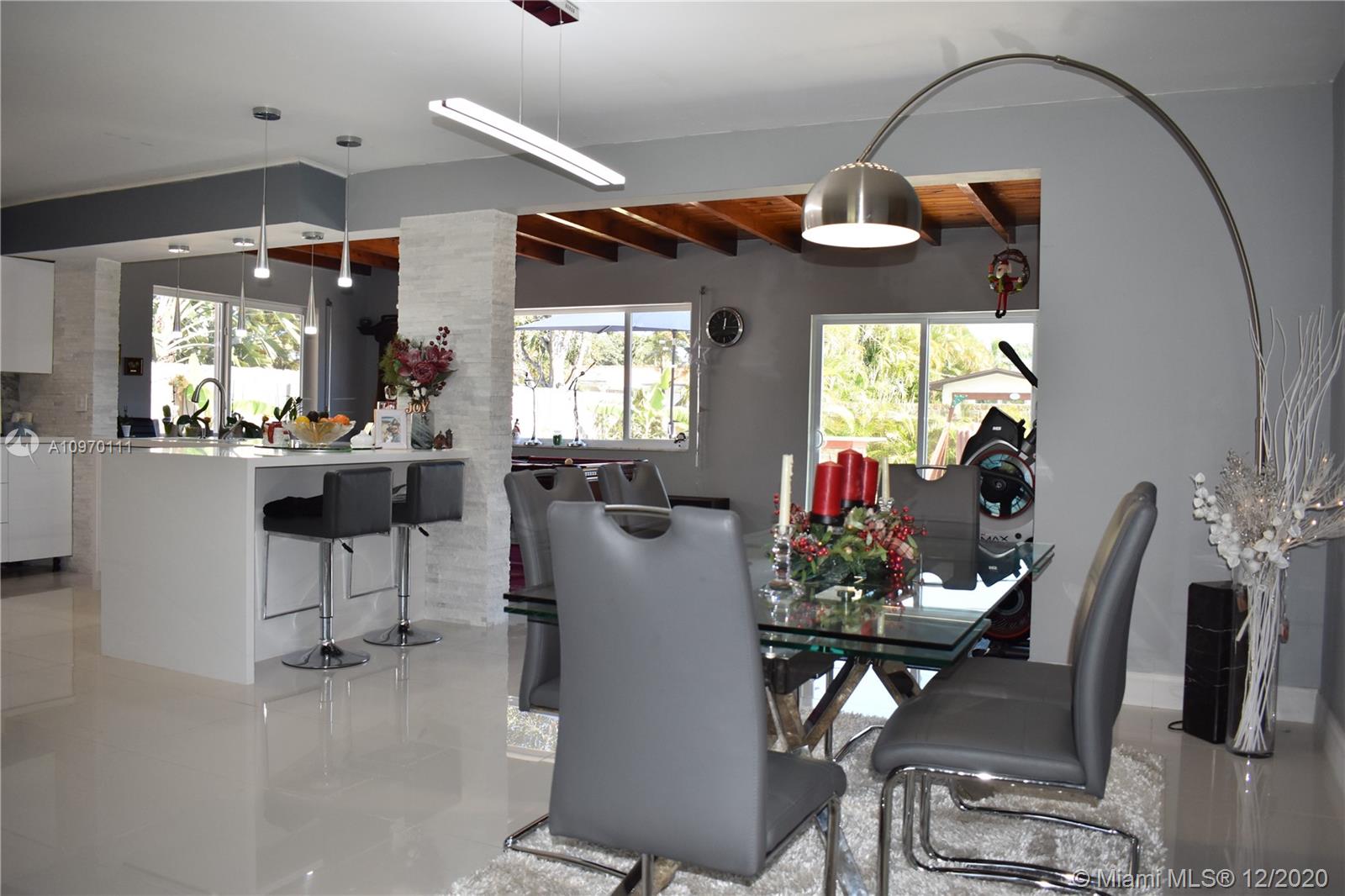 Great home in Hollywood Hills, totally renovated, with a large and completely fenced-in yard. Located on a trafficless street close to shopping plazas, places of worship and major highways. Painted in and out with many improvements. Park your car in the carport and enter into a large living-dining-family rooms combination and a brand new open kitchen. There is white porcelain flooring all around, newer A/C conditioners and hurricane proof windows and sliding door. A very large yard will allow for a pool and some more. House is sold in AS IS condition with right to inspect.