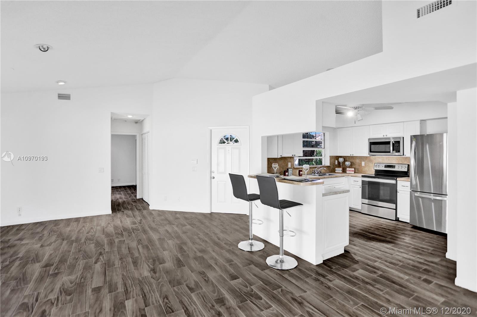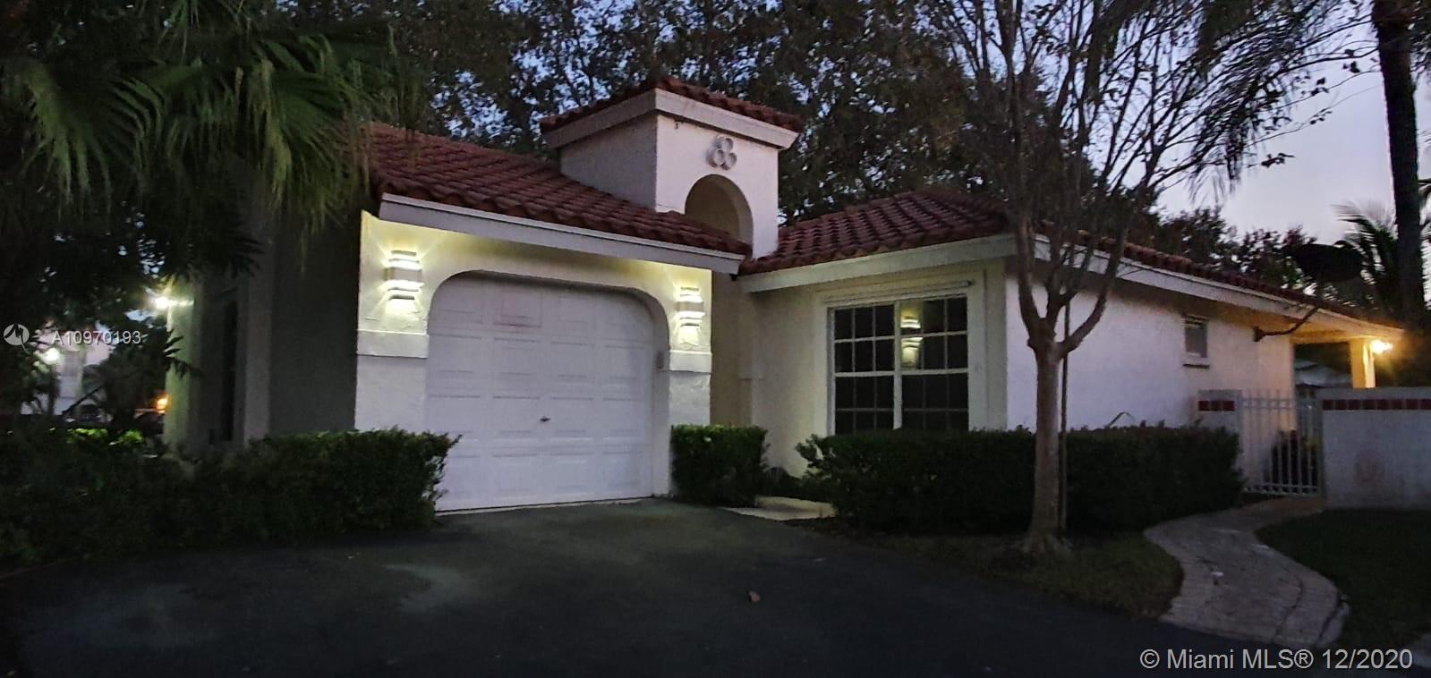 STUNNING CORNER LOT in Weston Country Isle Garden Homes. Entry Garden Walkway in this cozy 2bd/2bath 1 car garage with double drive way, single family home with a beautiful back yard. Completely new Tile Flooring!Brand New Electrical Stainless Steel Applicances. Remodeled walk in closet, accordian shutters! Roof was refurbished in 2006, has newer AC 2015. Close to Grade A Schools, surrounded by beautiful landscaping and lakes, perfect for family with pets....Proximity to local shops and restaurants..Just in Time for the Holidays..Hurry this wont last!