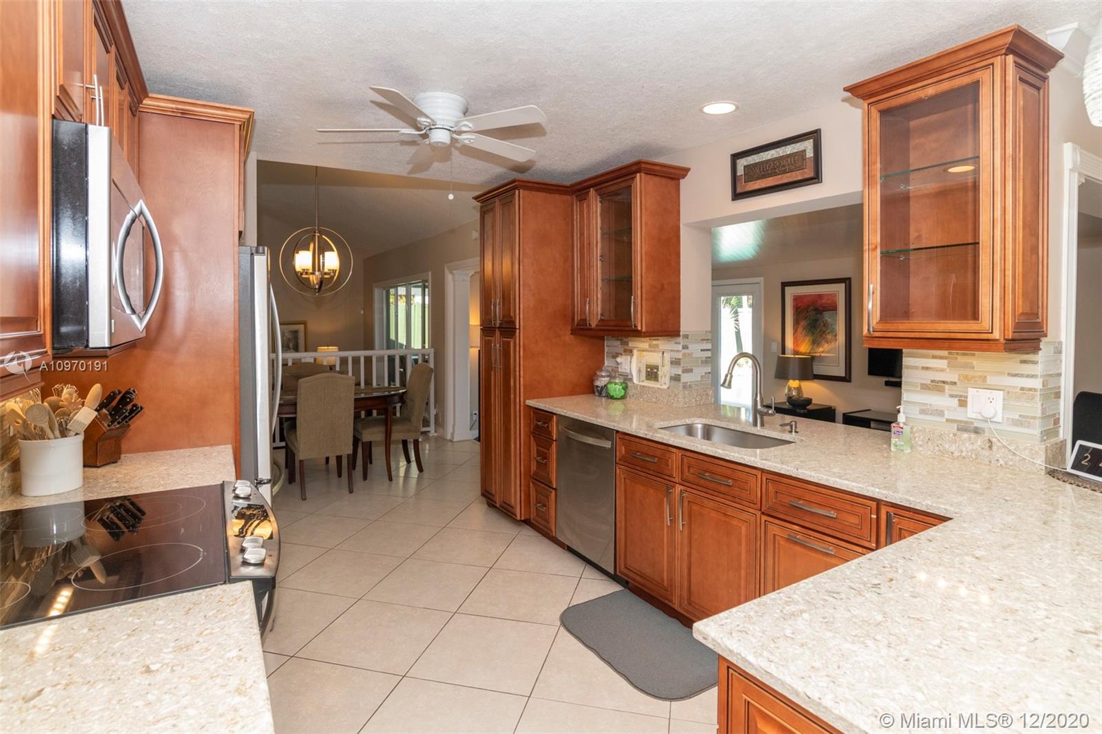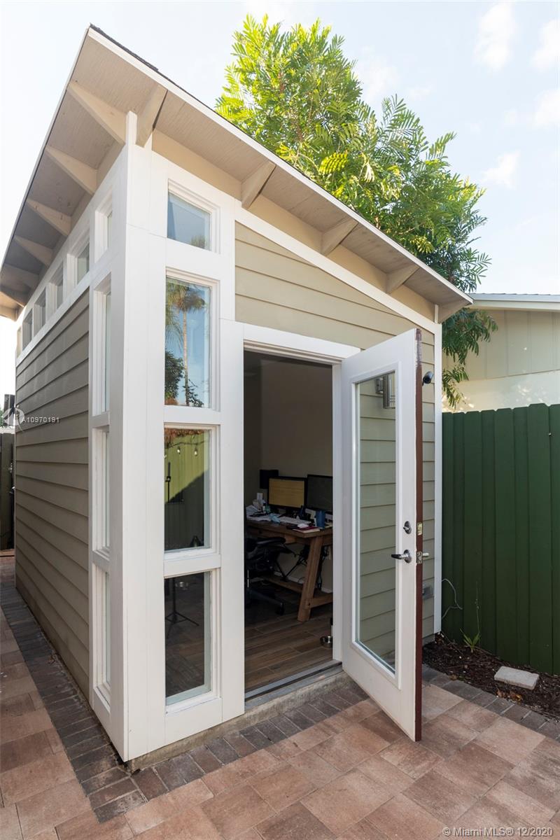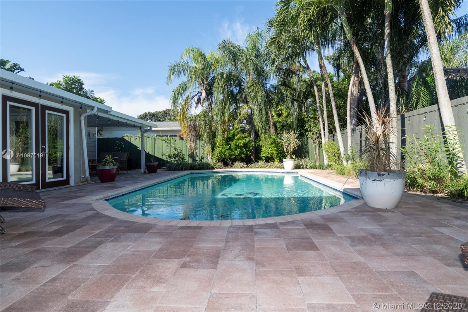 Stunning pool home with 4 bedrooms, 2 full and 1 half baths and a 2 car garage. A beautiful kitchen, quartz countertop and peninsula, stainless steel appliances and high-end maple cabinets. The master bedroom with ensuite bath has a large walk-in shower and dual sinks and three more bedrooms. Enjoy a large heated pool with patio space, including a covered entertaining area. A separate office in its own modern building with an efficient Mitsubishi cooling system. The home has a Water treatment system /separate meter for the sprinkler system. The roof is five years old and home has 8 ceiling fans. All doors are impact as are the master bedroom windows. There is a security system. The property is fenced and a short distance away are schools, entertainment, dining and shopping.