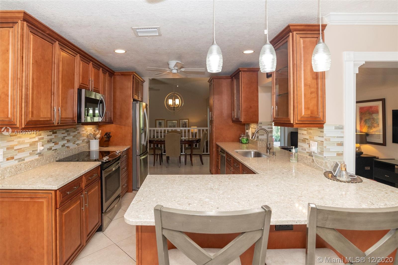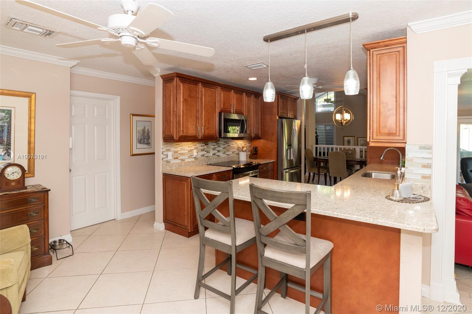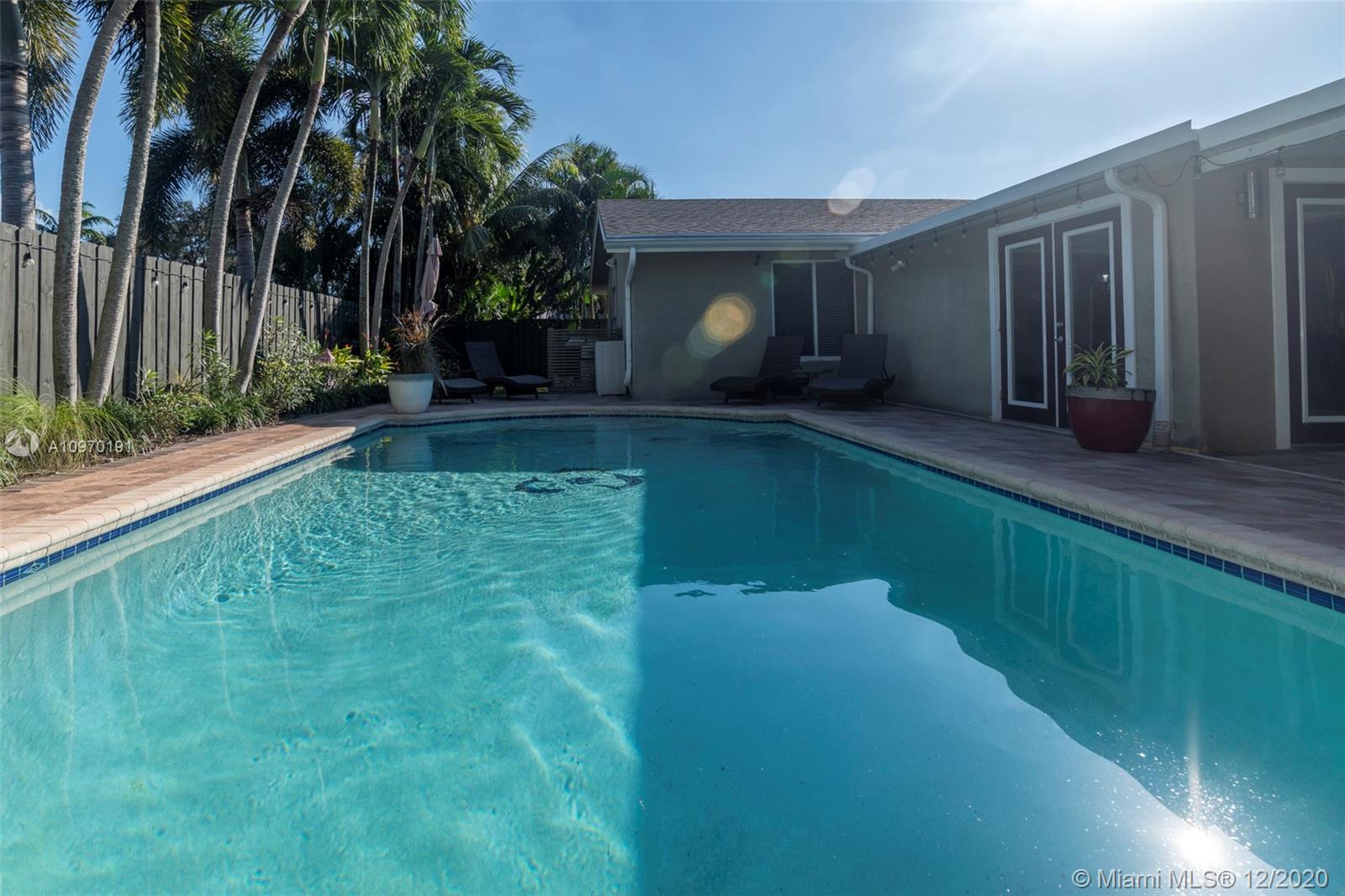 Stunning pool home with 4 bedrooms, 2 full and 1 half baths and a 2 car garage. A beautiful kitchen, quartz countertop and peninsula, stainless steel appliances and high-end maple cabinets. The master bedroom with ensuite bath has a large walk-in shower and dual sinks and three more bedrooms. Enjoy a large heated pool with patio space, including a covered entertaining area. A separate office in its own modern building with an efficient Mitsubishi cooling system. The home has a Water treatment system /separate meter for the sprinkler system. The roof is five years old and home has 8 ceiling fans. All doors are impact as are the master bedroom windows. There is a security system. The property is fenced and a short distance away are schools, entertainment, dining and shopping.