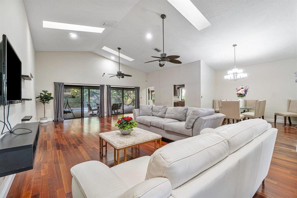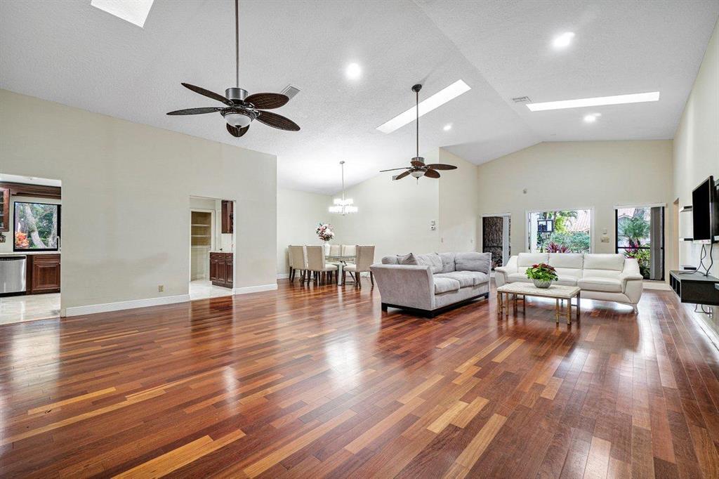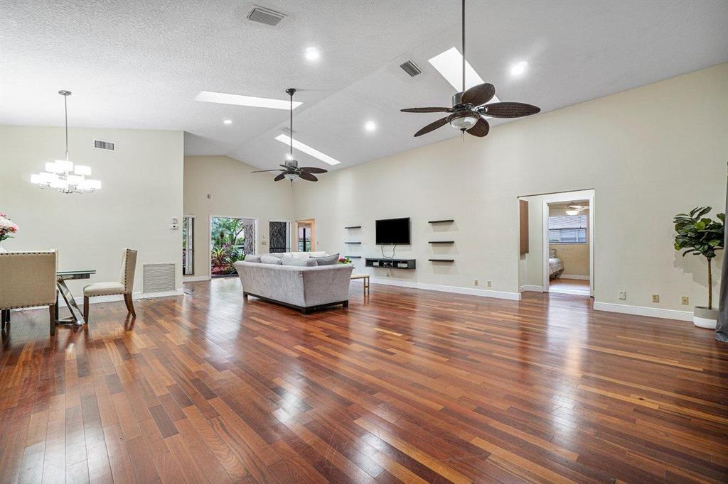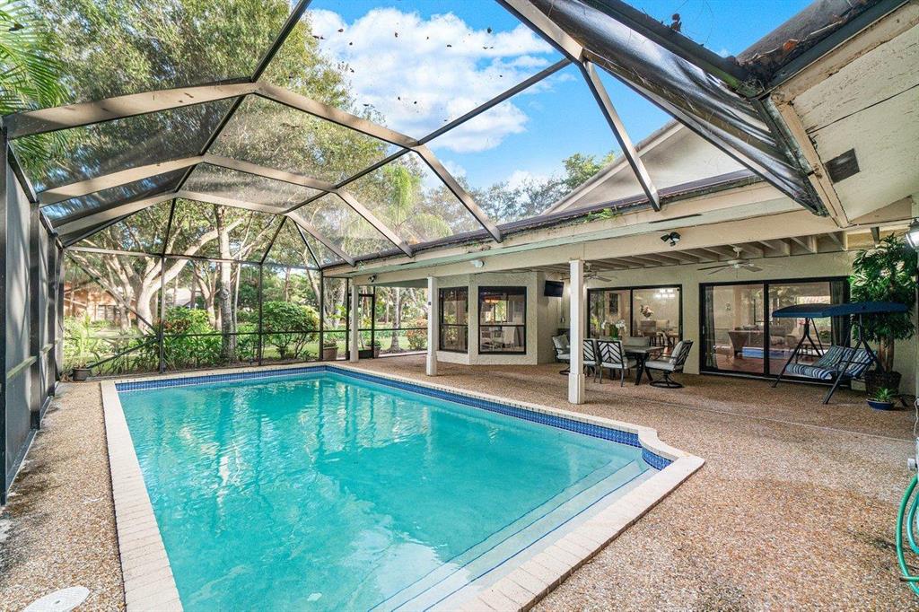 COME SEE THIS HUGE CORNER LOT HOME IN THE DESIREABLE COMMUNITY OF MILLPOND. FROM THE MOMENT YOU WALK IN THE DOOR YOU WILL FEEL LIKE YOU ARE HOME. ONE OF THE LARGEST LIVING AREAS YOU WILL FIND ANYWHERE. CHERRYWOOD FLOORING THROUGHOUT MAIN LIVING AREA. HIGH VAULTED CEILING. BEAUTIFUL KITCHEN WITH UPDATED CABINETS AND GRANITE COUNTERTOPS. STAINLESS STEEL APPLIANCES, NEW REFRIGERATOR. AND EAT-IN KITCHEN. NEW MARBLE FLOORS IN KITCHEN & MASTER BATHROOM. OVERSIZED MASTER BEDROOM WITH WALK-IN CLOSET W/ BUILT-INS. MASTER BATHROOM HAS HIS & HER SINKS, SEPERATE SHOWER AND ROMAN SOAKING TUB FOR RELAXING.AMAZING COVERED PATIO OVERLOOKING POOL AREA, GREAT FOR ENTERTAINING.THIS IS A VERY LARGE CORNER LOT WITH ALL KINDS OF FRUIT TREES TO ENJOY. POOL HEATER IS NOT WARRANTED