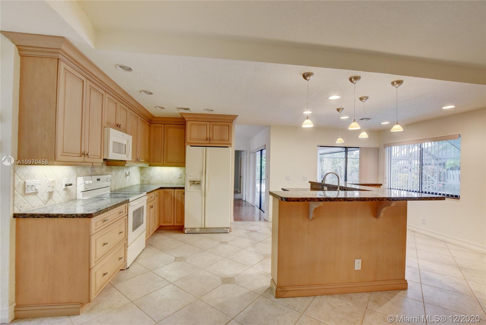 Amazing single story 4 bedroom, 2.5 bathroom home on a large lot, with a pool, located in an A rated school district! This home features an open floor plan that immediately opens to a spacious living room and dining room. Adjacent to the dining room is the open kitchen with beautiful wooden cabinetry and a breakfast nook area with views of the backyard. The primary bedroom in this home features 2 spacious walk-in closets and an attached full bathroom with a roman tub and separate shower. On the exterior of the home you will find a screened-in patio and a large yard making this home perfect for entertaining and enjoying a true Florida lifestyle. This home is conveniently located near shopping, dinning, and much more, you won't want to miss your opportunity to own in this community.