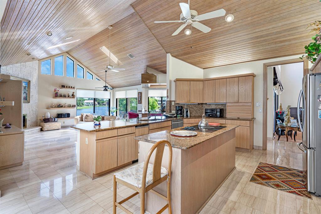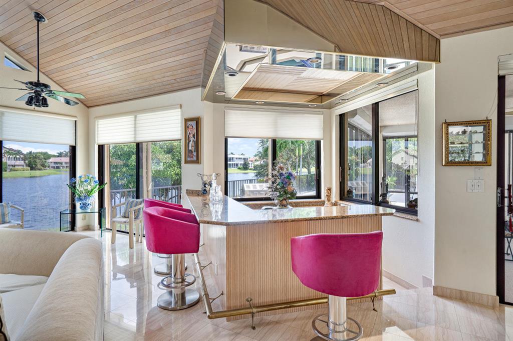As soon as one comes into the front entrance, you are met with amazingly high volumous ceilings that will be seen throughout this charming home. The second thing you won't help but notice are the stunning lake views across the home! The Master Bedroom windows and cabana master bath have newer impact windows and doors. The majority of the home has roll down shutters, with panels for windows and accordion protection. Granite kitchen and bar has wonderful views whether your cooking or socializing with friends. This beautiful home has 5 bedrooms/4 full baths/3 car garage. One bedroom is currently made to a den, but can be easily converted back to a bedroom with your own unique touches. WHC has 24/7 security, many community amenities, excellent location with A plus schools.