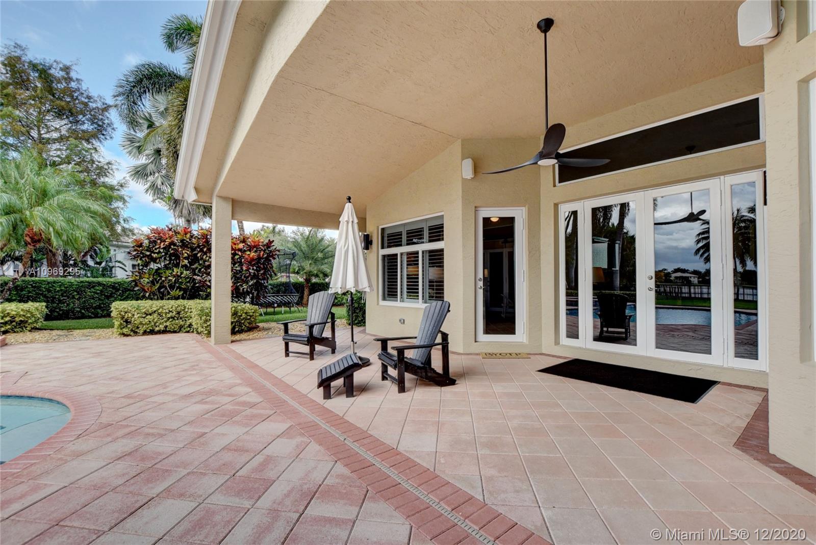 Gorgeous lake view from this immaculate, completely remodeled 5 bedroom + dedicated office + great room/3 bath residence in guard-gated Long Lake Estates. Impact glass windows/doors showcase generous yard, salt system pool w/raised spa, & wide view of the lake. Meticulously maintained & tastefully updated w/high-end finishes: porcelain wood tile flooring w/new 7.25" baseboards, quartz bathroom countertops, undermount sinks. Newer roof (2007) w/Roof-a-cide treatment, New a/c's, new Rheem water heater, new LG washer/dryer and all new Samsung & GE Profile kitchen appliances. U-line wine fridge, Plantation shutters, customized shelving in all closets. 3-car garage w/impact resistant garage doors, higher horse power motors & app-controlled entry. Whole-house water filtration/softening system.