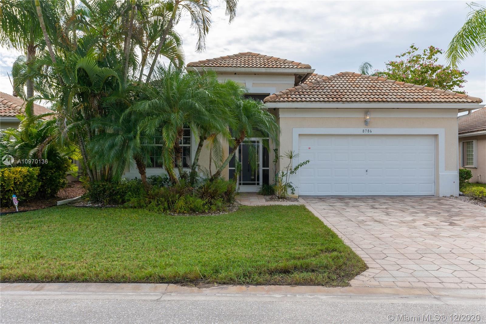 In the highly sought-after Andros Isle! This beautiful Open Floor Plan features 3 bedrooms (3rd bedroom currently used as a den), 2 bathrooms, 2 car garage, volume ceilings, split bedrooms, family room, dining room and an eat-In kitchen The spacious Master Bedroom offers tray ceilings, his and hers walk-in closets, dual sinks, vanity, a shower and separate soaking tub. Step out of the family room and living room, into the screened pool area and patio. The Andros Isle community features Resort Style Amenities including, Large Community Pool, Exercise Room / Gym, Playground, Tennis Courts and more.The HOA fees include an impressive full package: cable, high speed internet, alarm system, exterior painting, irrigation, landscaping and lawn.