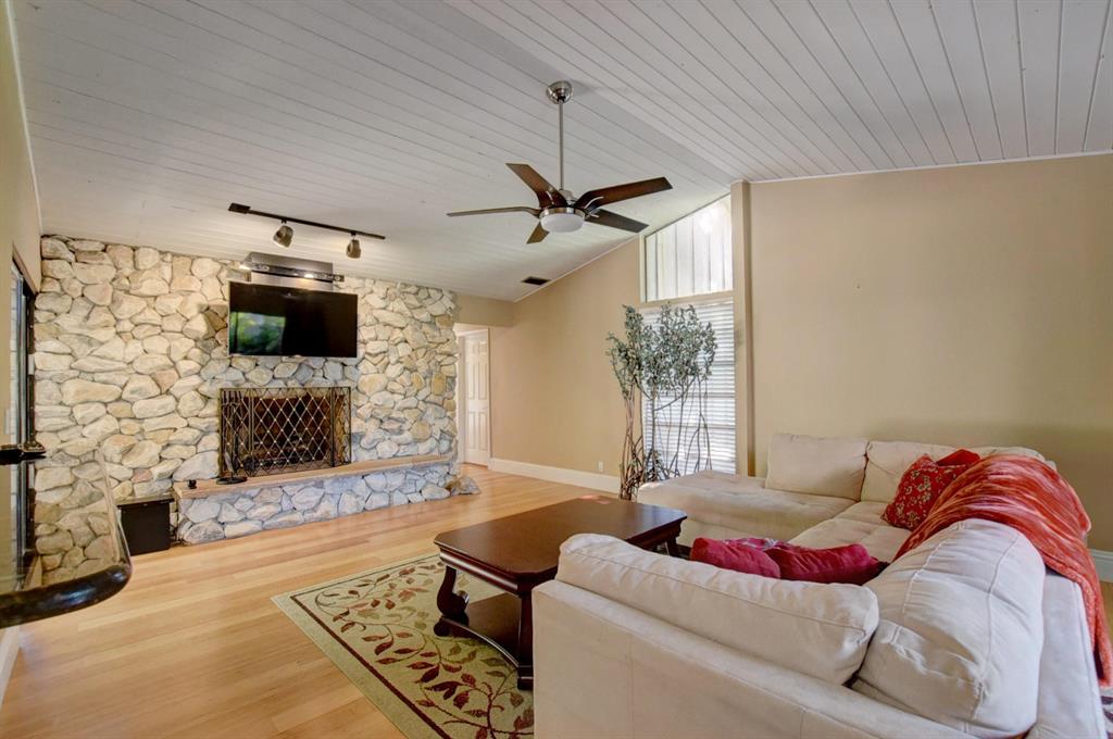 A spacious family oriented split floor plan w/ 5 bedrooms or 4 plus den (5th bedroom currently office) plus 1 bedroom has separate entrance, 3.5 baths. NEW roof, pool newly resurfaced, attached 2 car garage, detached 1.5 car garage was built to withstand a category 4/5 hurricane. Large bonus room! Upgraded eat in kitchen, formal dining room, family room & formal living room w/ working wood burning fireplace, large covered patio, pool w/ waterfall pluselectrical connection for hot tub or outdoor kitchen. Fenced in over-sized interior corner lot located off one of the community's parks. Community offers 8 clay tennis courts, Olympic size pool, outdoor basketball courts, parks, playground, jungle gym, beach volleyball, 2 racquet ball courts, pickle ball and community clubhouse. 24hr gate