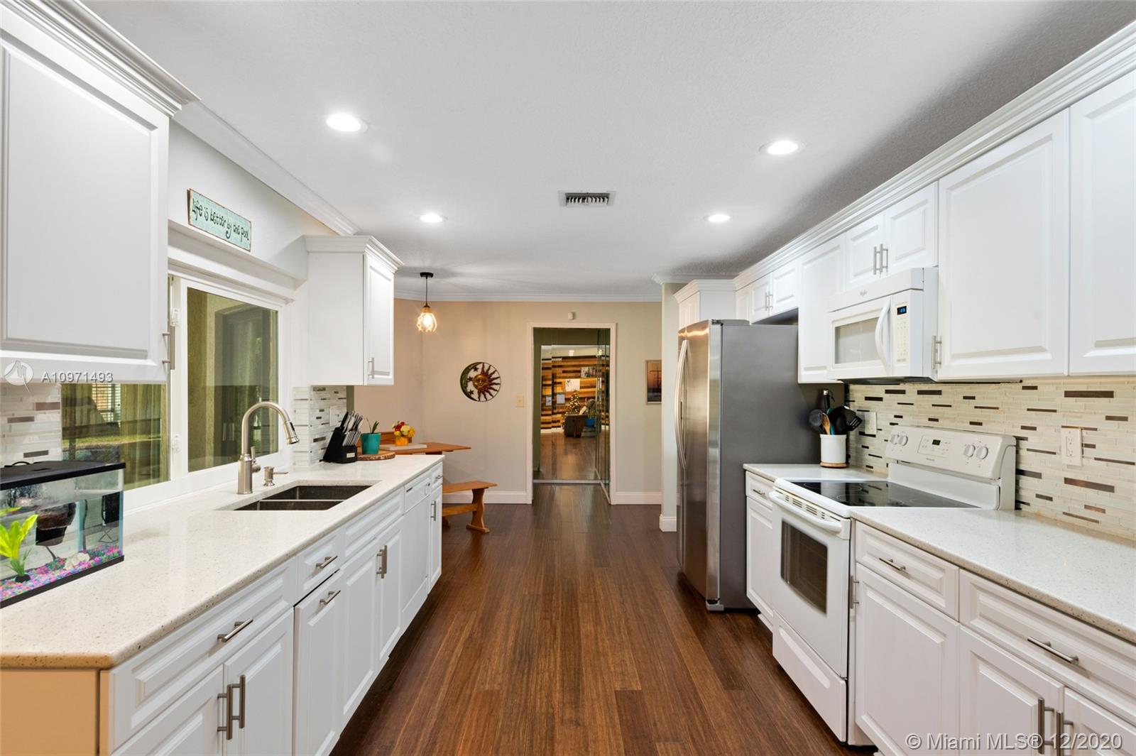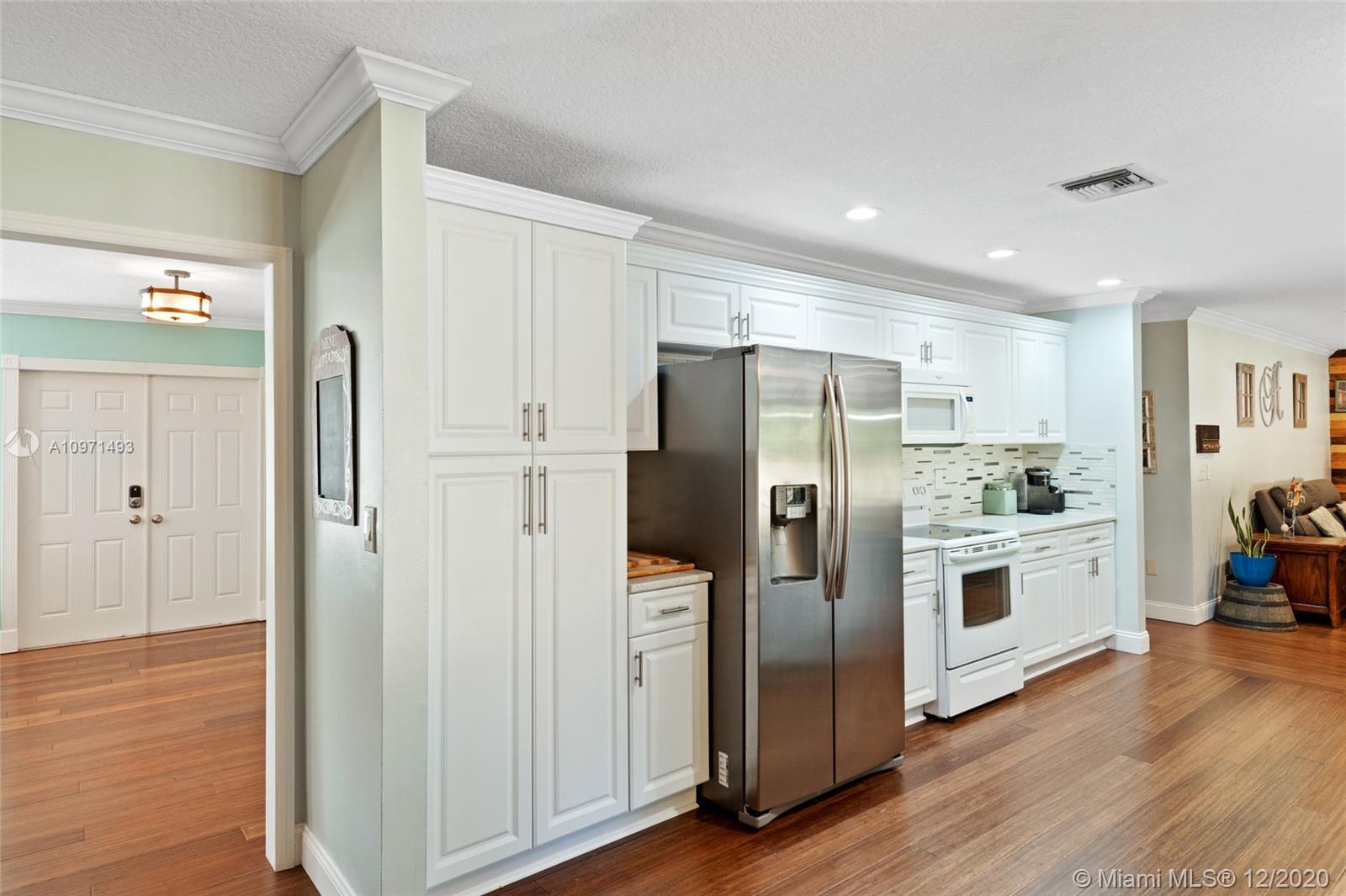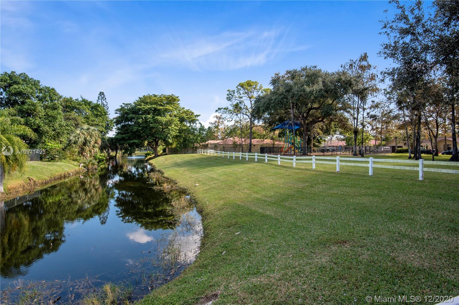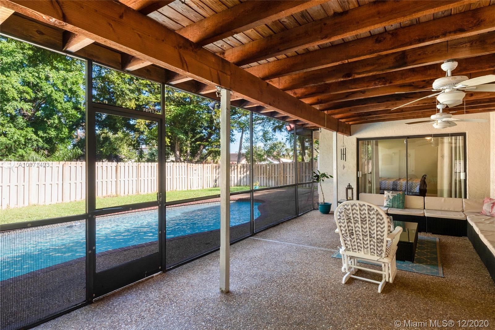 This spacious home features 4 bedrooms (split floorplan), 3 bathrooms (1 cabana bath), 2-car garage, pool, canal, and is located next to Countrywood Park. Other features include updated wood flooring through most of the home, updated kitchen with granite countertops and breakfast nook area, roof installed in 2013, HVAC handler newly installed, updated baseboards, crown molding, and recessed lighting. Exterior features include circular driveway, fully fenced backyard, covered and screened patio, pool and extended outdoor patio area. Very private backyard and a great space for entertaining.