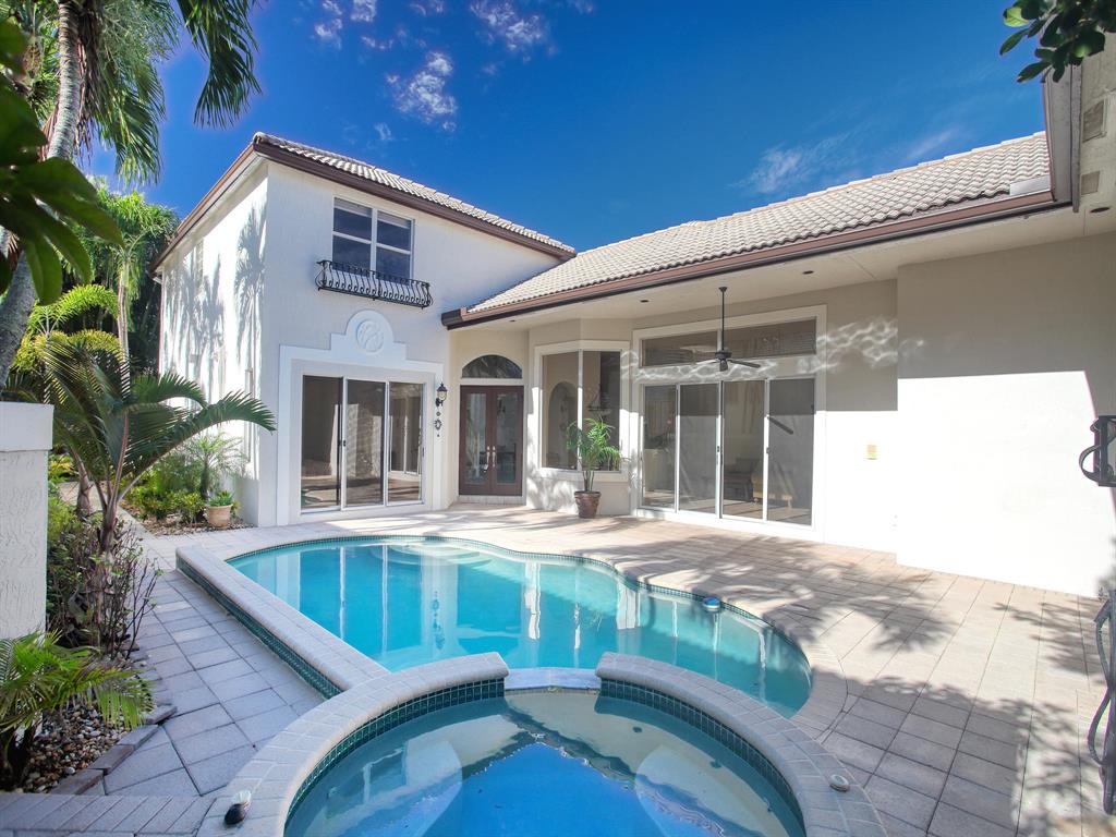 OWNER MOTIVATED!Just painted and move-in ready courtyard home. This spacious two-story home includes a guest house, a heated pool and spa, and a lovely connected backyard. Located in the stylish and secure Woodfield Country Club, this house's prime location is a minute's walk from the community's main gate and the Regency Court shops. Close to the most prestigious public and private schools in Boca Raton. Community amenities include: basketball, pickleball, field, tennis, pro-shops, golf, spa, salt room, sauna, steam room, pool, hot tub, hair salon, restaurants, game room, toddler playroom/baby sitting service, water playground, and fitness center.