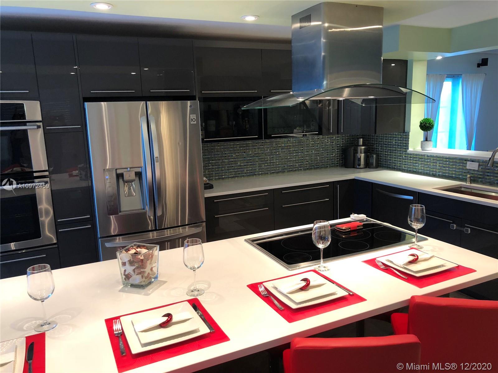 The most beautiful,conveniently located next to the pool,clubhouse and tennis courts, this 3 bedroom,2and ½ baths corner townhome features the largest floorplan in the community.First floor 36x36 Carrara marble,custom built kitchen,top quality quartz countertop with SS appliances,cooking island with induction cooktop and dual temperature wine refrigerator, wall oven/microwave combo, refrigerator,SS sink with touchless faucet and dishwasher. Laundrywith Wi-Fi washer and dryer and the half bath are located nearby. Huge Livingroom leads to the patio. Second floor,with expresso bamboo floors,a master suite with walk-in closet, M-bath with 2 person Jacuzzi and glass shower cabin, balcony,two more bedrooms and second bath.New A/C,takless water heater,electric Sunsetter,surge protection.