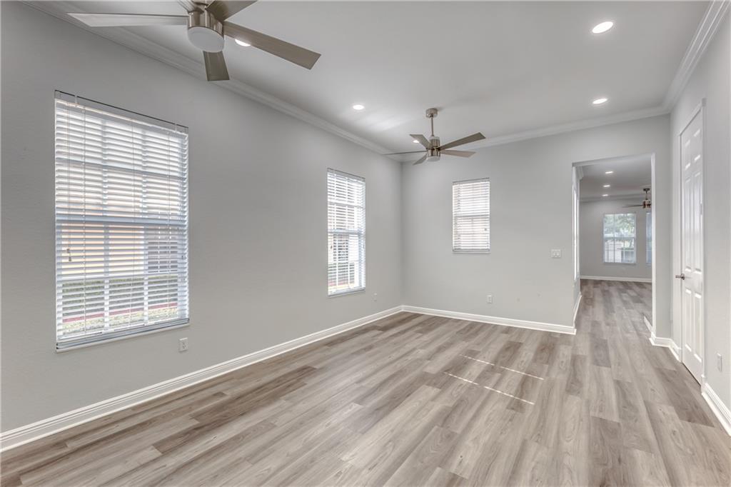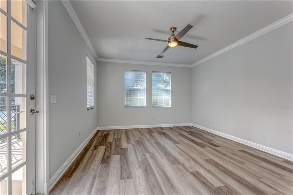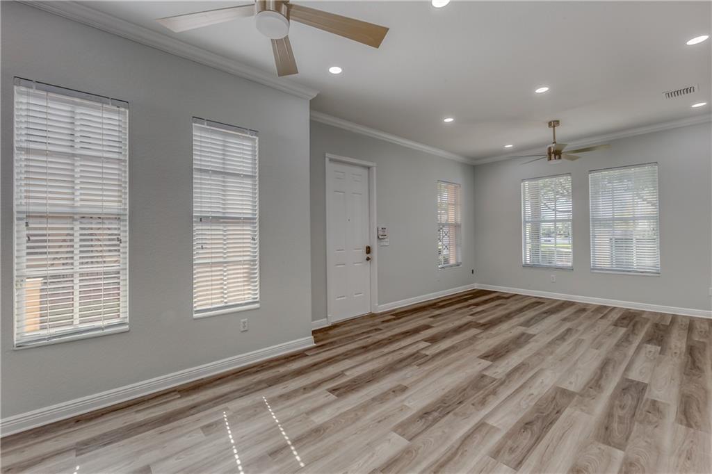This beautifully remodeled townhome is in sought after Central Park. Located on a private lane this end unit has views of the garden & the pond. Ready to move in. Townhome has a contemporary coastal vibe freshly painted with new flooring throughout. Kitchen is in classic white with blue water accents and white counters. Large two car garage with epoxy painted floors. Half bath has new fixtures, vanity and toilet. Upstairs has a split bedroom plan with a very private primary bedroom with two walk in closets and a private balcony overlooking the park. The primary bathroom has new tile, double vanity and fixtures. On the second floor is the laundry room, linen closet & guest bedrooms. & remodeled bath. Pool & Gym, Cable, pets ok. Newer AC. Impact windows. Rentals ok. Crown moulding