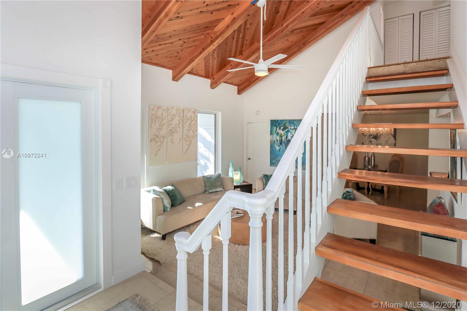 Very Bright Home with Vaulted and Exposed Wood Ceilings! This 3/3 greets you w/ a circular paved driveway & very large open patio. Double doors open up to a foyer featuring a Glass Murano chandelier & a wood staircase. Very spacious home w/kitchen that opens into family room. Kitchen has center cooking island, double sink, double oven, pantry & granite counters/backsplash. All impact windows & tiles throughout. Full bathroom on 1st floor. A laundry room on each floor. Reading nook area & very large terrace on the 2nd floor. Wide 1 car garage. Oversized screened porch that wraps around two sides of the house & is covered on one side. House is fenced all around giving it great privacy. LED lighting in & out. Home has been freshly painted. Located 5 minutes from Beach & Downtown Hollywood