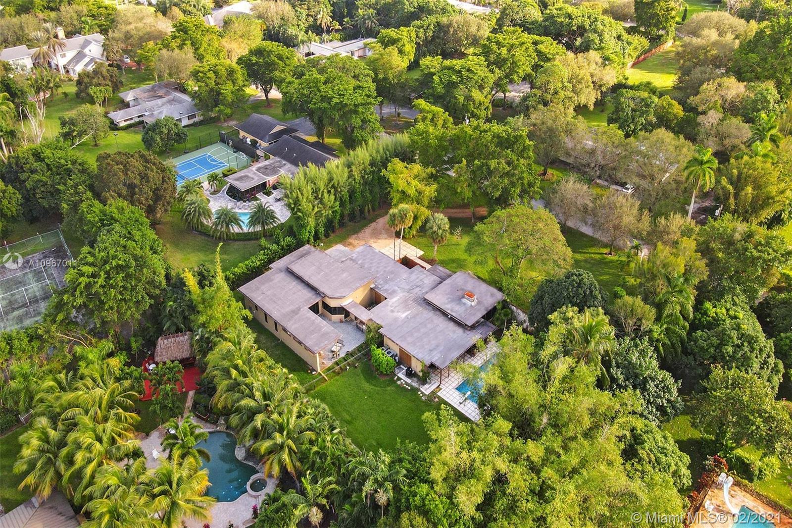 Best price per sq ft in Historic Plantation. Two homes under the same roof connected by garage and common courtyard. Boasting a total of 5 master suites, 2 kitchens, 5 master baths, 1 cabana bath & 1 guest bath. After ambitious 2013 expansion masterfully brought about a blend of classic & modern in Lloyd's design spirit. Safe room, 2015 roof, 2017 pool, 2020 water heater, 8' impact doors, generator, 1000-gal prop tank. Quintessential fireplace as focus, Fleetwood doors, flawless indoor-outdoor transition, floor plan encouraging family to gather in main living area & the use of multiple, private courtyards make it one of a kind. Designed & built in the spirit of Frank Lloyd Wright's organic architecture. Harmony between humanity & environment in full display at this grand 4,750 sqft beauty!