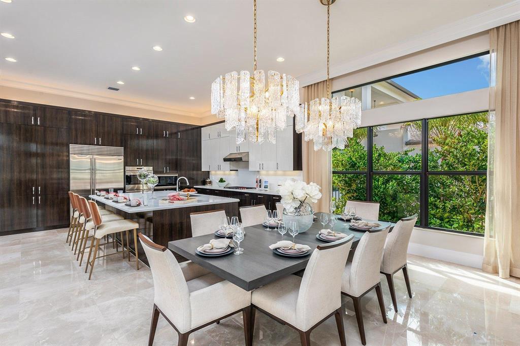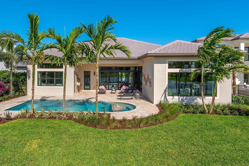 Beautiful one-story home under construction in Boca Bridges. This Murano contemporary model will be completed Fall 2021. An additional game room/family room and a den add to the three bedrooms offering versatility of the floor plan. Throughout the main living areas, upgraded engineered wood seamlessly connects the open concept floor plan. The Kitchen includes Artic White cabinets with an upgraded kitchen design (#4D) featuring a 36'' Chimney hood and a 36'' cooktop. Also included is the enhancement package with stacked cabinets, upgraded Quartz countertops with mosaic backsplash that extends behind hood and a farmhouse stainless steel sink by Mirabelle. A true focal point is the kitchen island with upgraded Quartz countertop with upgraded 3'' edge. The wet bar in the game room includes -->