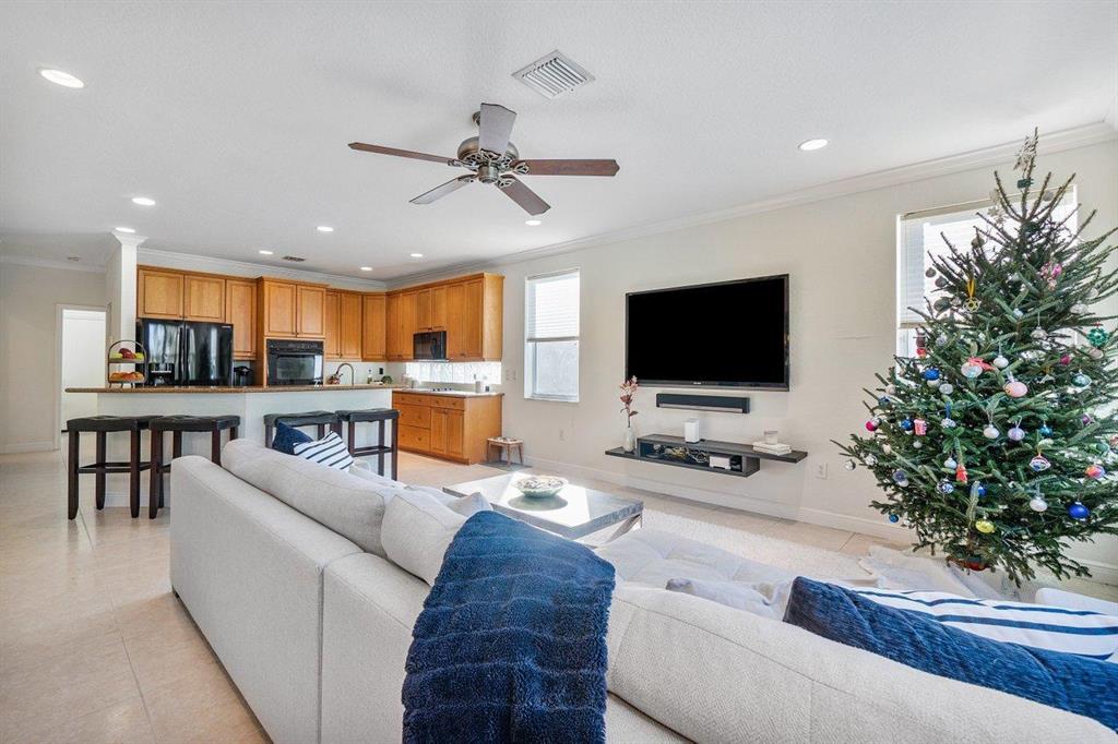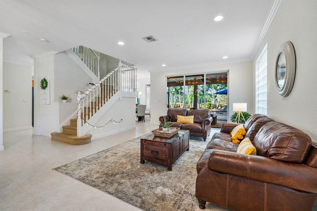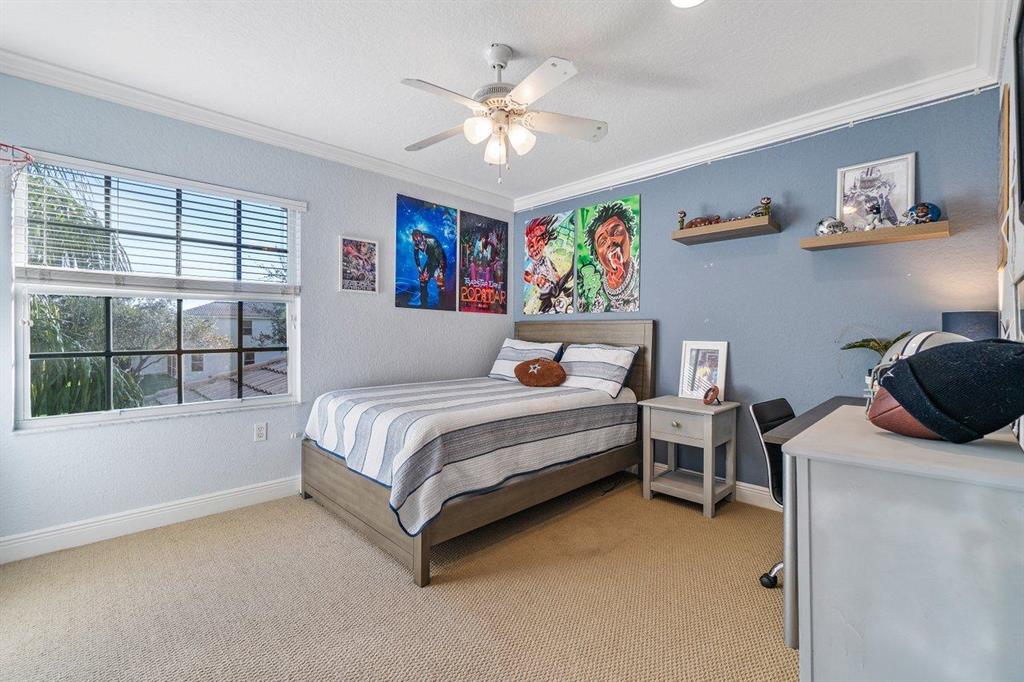Move-in ready 5 bedroom (plus bonus room/office), 3 full bath, single family pool home with over 3000 living sq ft & a 3 car garage on a spacious and private lot in highly sought after Saturnia. This beautiful well-maintained home has one bedroom and full bath on the first floor and 4 spacious bedrooms + bonus room/office on the second floor. Neutral colors throughout, crown molding, large tile on main level, separate living and family room, fitted closets, and the list goes on. House was just painted on the exterior, has accordion shutters on the second level, both a screened & open patio with a fabulous pool and lots of entertaining space. House is fully fenced on a cul-de-sac lot with lots of privacy. Saturnia is a fabulous community with great amenities right from A rated schools.