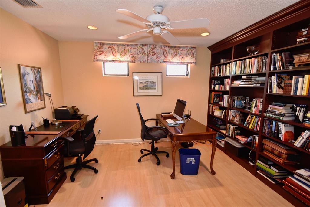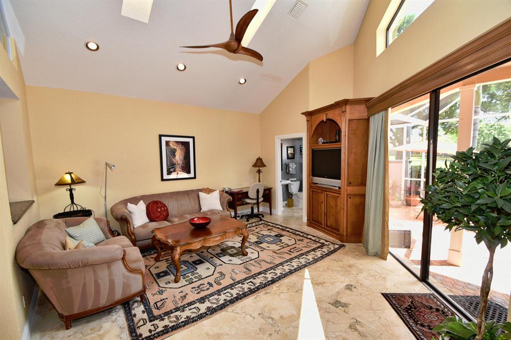 Wait to you see this beautiful home with lake and golf course view. This 3 bedroom plus an office with the master down has been renovated! This home is in immaculate condition. Some of its features include, roof 2009, shutters, volume ceilings, lots of light, kitchen open to the family room with view of the golf course, marble floors, brand new remodeled master bath with two walk in closets, new outdoor pavers, and a screened in patio. Enjoy the fabulous landscaped back yard with a newly diamond brite pool while enjoying the open view. $250 special assessment paid quarterly by homeowners to HOA for house painting. Home is in move in condition just bring your clothes! Mandatory country club membership and annual dues