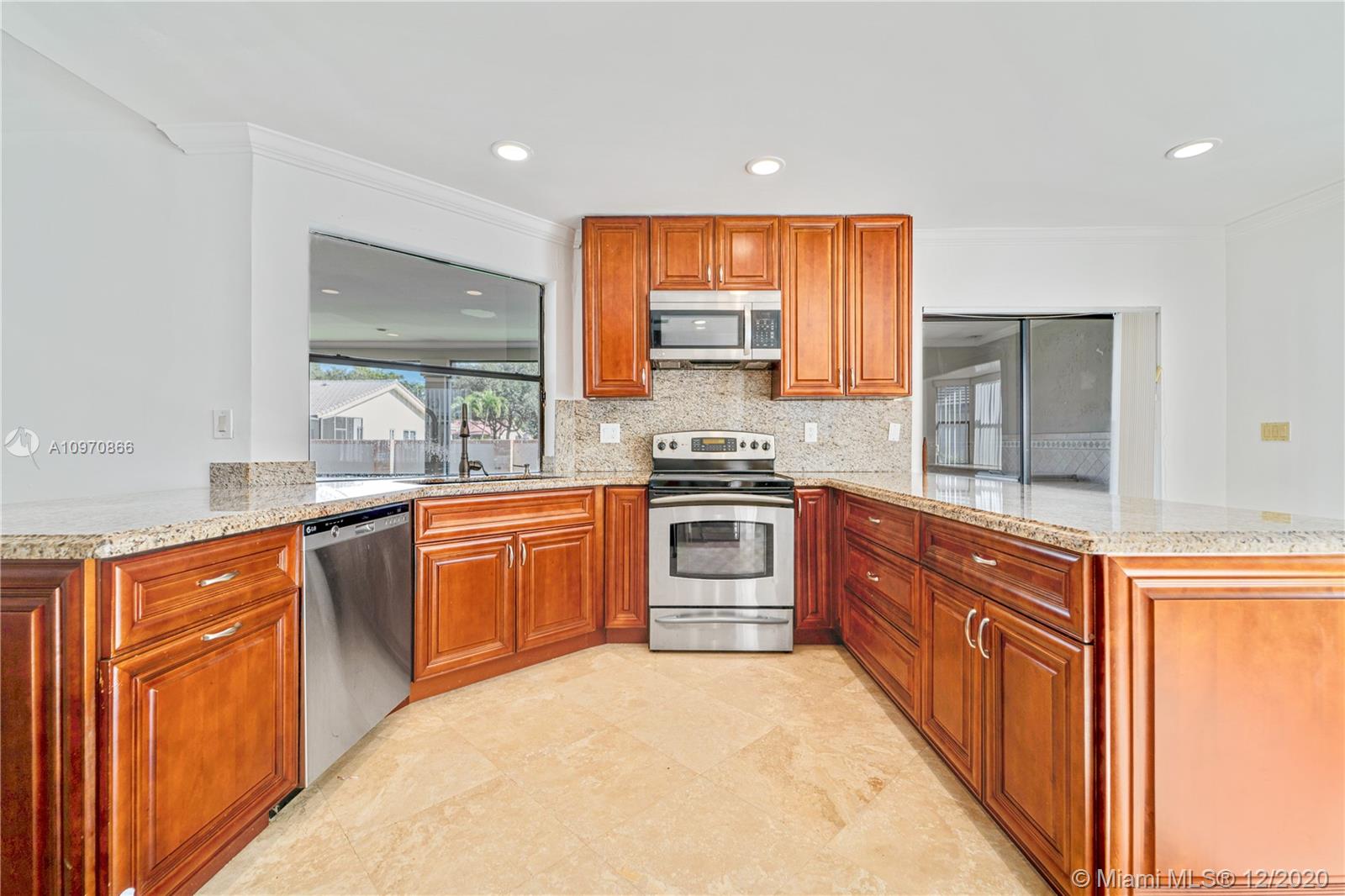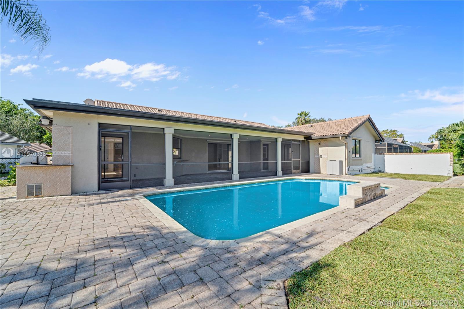 Your Florida living begins with this highly sought after Pine Ridge pool home. Featuring a distinguished brick facade with a beautifully landscaped exterior and a two car garage. Enter inside to find a fantastic gourmet kitchen with solid wood cabinets, gorgeous granite counter tops & SS appliances. Generously sized bedrooms with newly renovated bathrooms plus a bonus room/office and a private laundry room! This home offers an outdoor pool with plenty of yard space, built in BBQ grill, sprinkler systems, screened patio, outdoor shower, private entries to bathrooms and pavers extending out into the sides of the home and much more. Hurricane panels all throughout and impact front door. Low HOA in the heart of Coral Springs, near expressways, shopping, beautiful parks & restaurants.