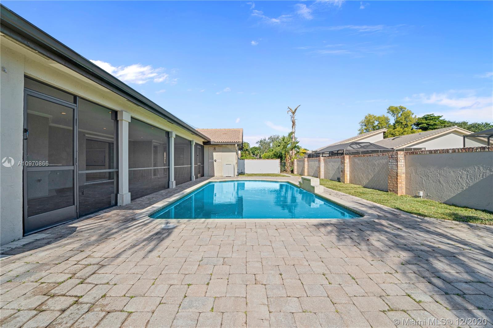 Your Florida living begins with this highly sought after Pine Ridge pool home. Featuring a distinguished brick facade with a beautifully landscaped exterior and a two car garage. Enter inside to find a fantastic gourmet kitchen with solid wood cabinets, gorgeous granite counter tops & SS appliances. Generously sized bedrooms with newly renovated bathrooms plus a bonus room/office and a private laundry room! This home offers an outdoor pool with plenty of yard space, built in BBQ grill, sprinkler systems, screened patio, outdoor shower, private entries to bathrooms and pavers extending out into the sides of the home and much more. Hurricane panels all throughout and impact front door. Low HOA in the heart of Coral Springs, near expressways, shopping, beautiful parks & restaurants.