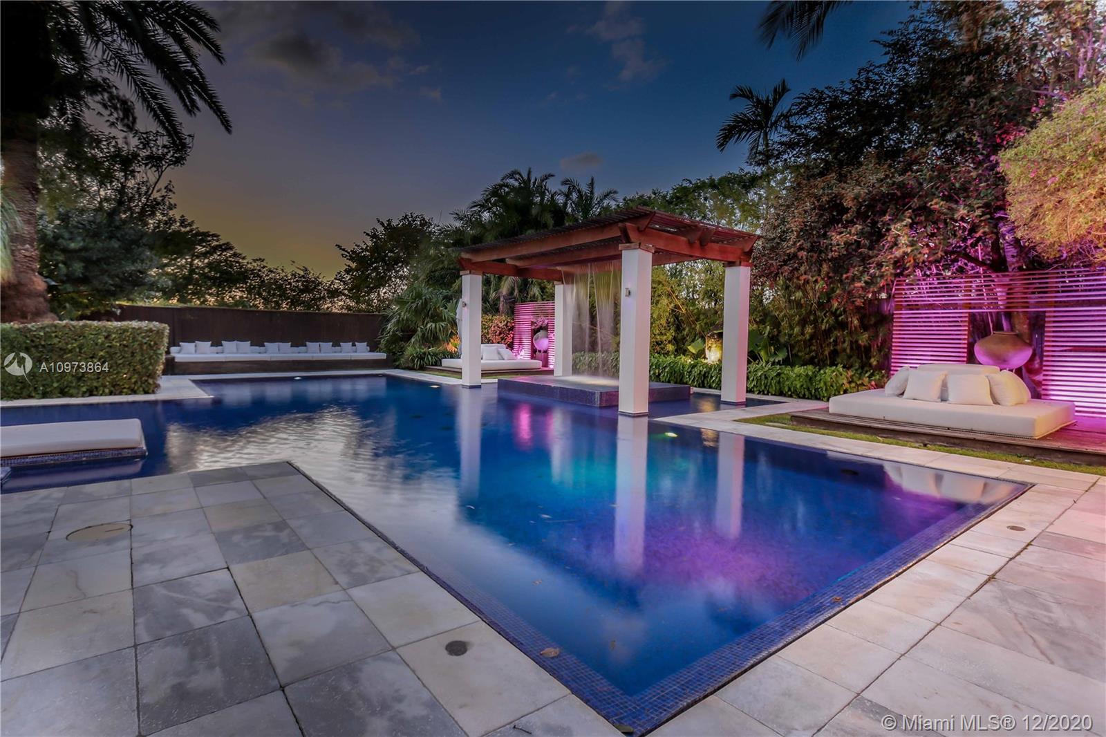 This richly landscaped 16,000 sqft corner lot residential masterpiece is situated on Miami Beach’s exclusive La Gorce Country Club. This private residence was completely remodeled, with upgrades for the master entertainer including Crestron light & audio controls enabling the high-end speaker system and impressive LED color light system installed throughout the backyard. Other upgrades include electric shades & drapes throughout the home, video cameras monitoring the exterior & interior of the house, and a premium chef's kitchen. The flow of the home is impeccable, with its spacious family area opening to the large & stunning backyard & pool, the master bedroom overlooking the beautiful La Gorce golf course, and 3 additional bedrooms upstairs. Easy to show!