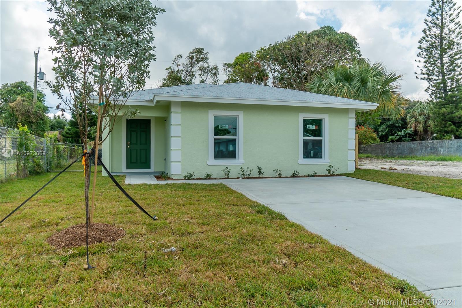 NEW CONSTRUCTION!!! 1533 sqft living and 1699 total sqft, 4 bedrooms, 2 bathrooms, Italian white porcelain tile throughout home. open floor plan, Large Kitchen with granite countertops, white shaker cabinets and stainless steal appliances. IMPACT WINDOWS, Large laundry room, large patio and fenced in backyard. Close to beaches, Clematis, restaurants, palm beach outlets and I95.Ready for move in February 2021 (photos are from model home that is currently under contract home will have exact floor plan and upgrades) NO HOA.