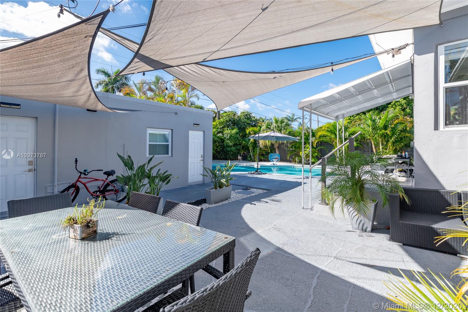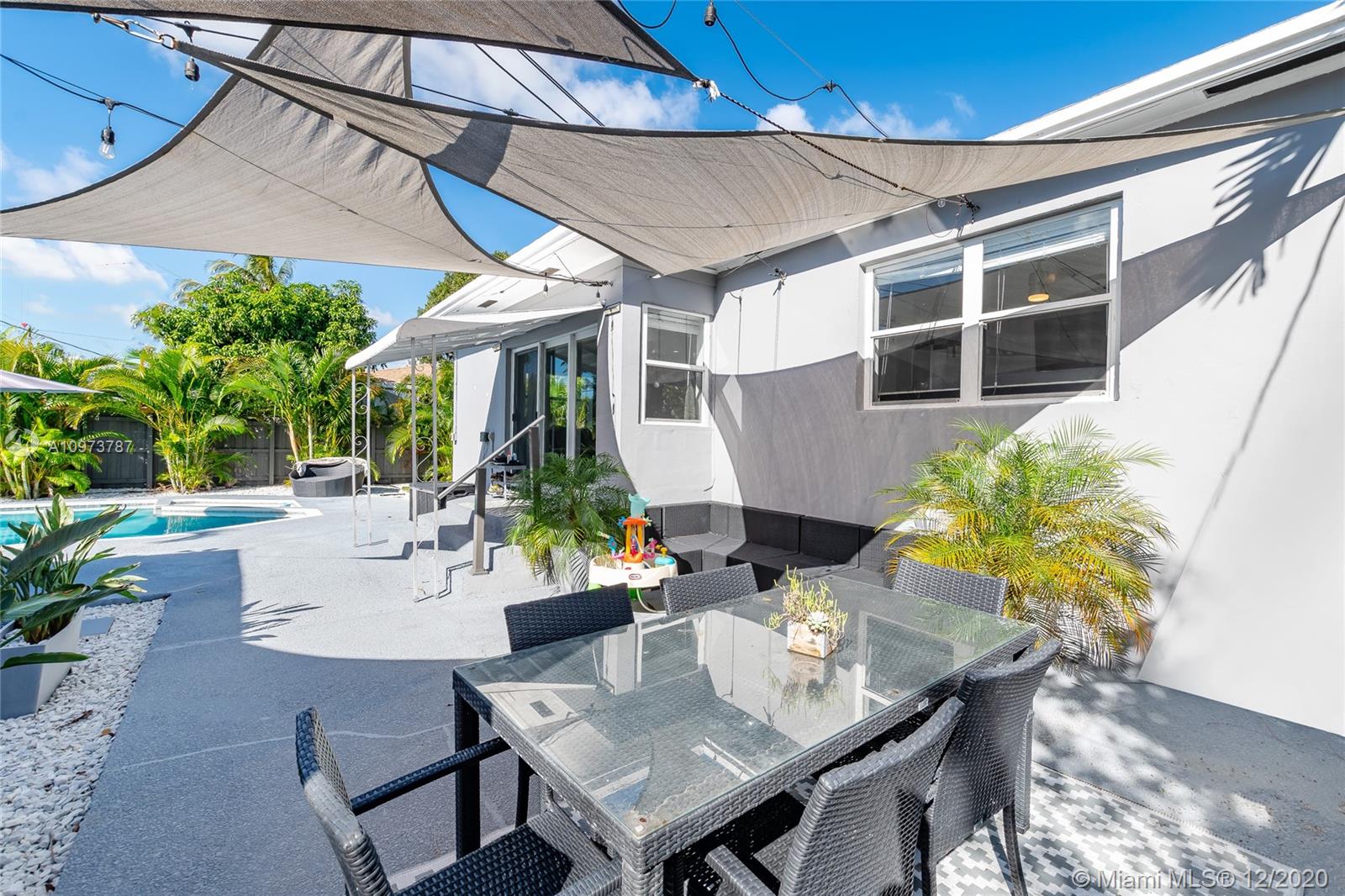 Enjoy the amazing natural light as you enter this Remodeled 4 Bed/3 bath Smart Home with internet-enabled thermostat, refrigerator, security & camera system. Huge Great Room & Kitchen perfect for entertaining. Set up as a 3/2 Main house & Legal detached 1/1 649 sq ft guest house with living/dining & separate bedroom. Updates include: electrical system with all LED fixtures, impact windows/doors, flooring, all fixtures, Euro-style kitchen with quartz counters & stainless steel appliances inc gas range & fresh int/ext paint. Resort-style pool with spa & solar heating and over 2,000 sq feet of patio to entertain. Fully landscaped with established palms & Mango tree. Fully fenced with automatic gate opener to pull vehicles, boats or RV into the driveway running the full length of the property.
