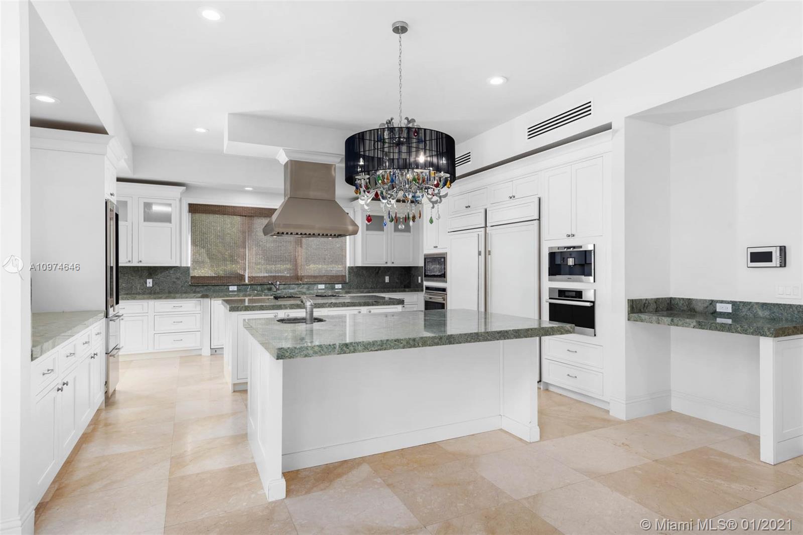 Superlative Mediterranean Masterpiece located on a stunning corner lot in coveted North Pinecrest. Awing interior with a soaring 2-story entry hall, huge windows, wood and marble floors, refined finishes & details. 5 bedroom, 5/2 bath perfectly spread designed over 7,628 SqFt of living area. Formal living and dining rooms, oversize chef’s kitchen with two cooking islands, WOLF and Subzero appliances and pool views is an epicurean dream. A spectacular oasis with heated salt water pool, expansive gazebo and patio with full summer kitchen – impeccably designed for entertaining inside & out. Full home generator, elevator, basketball court and three car garage complete this Pinecrest home.