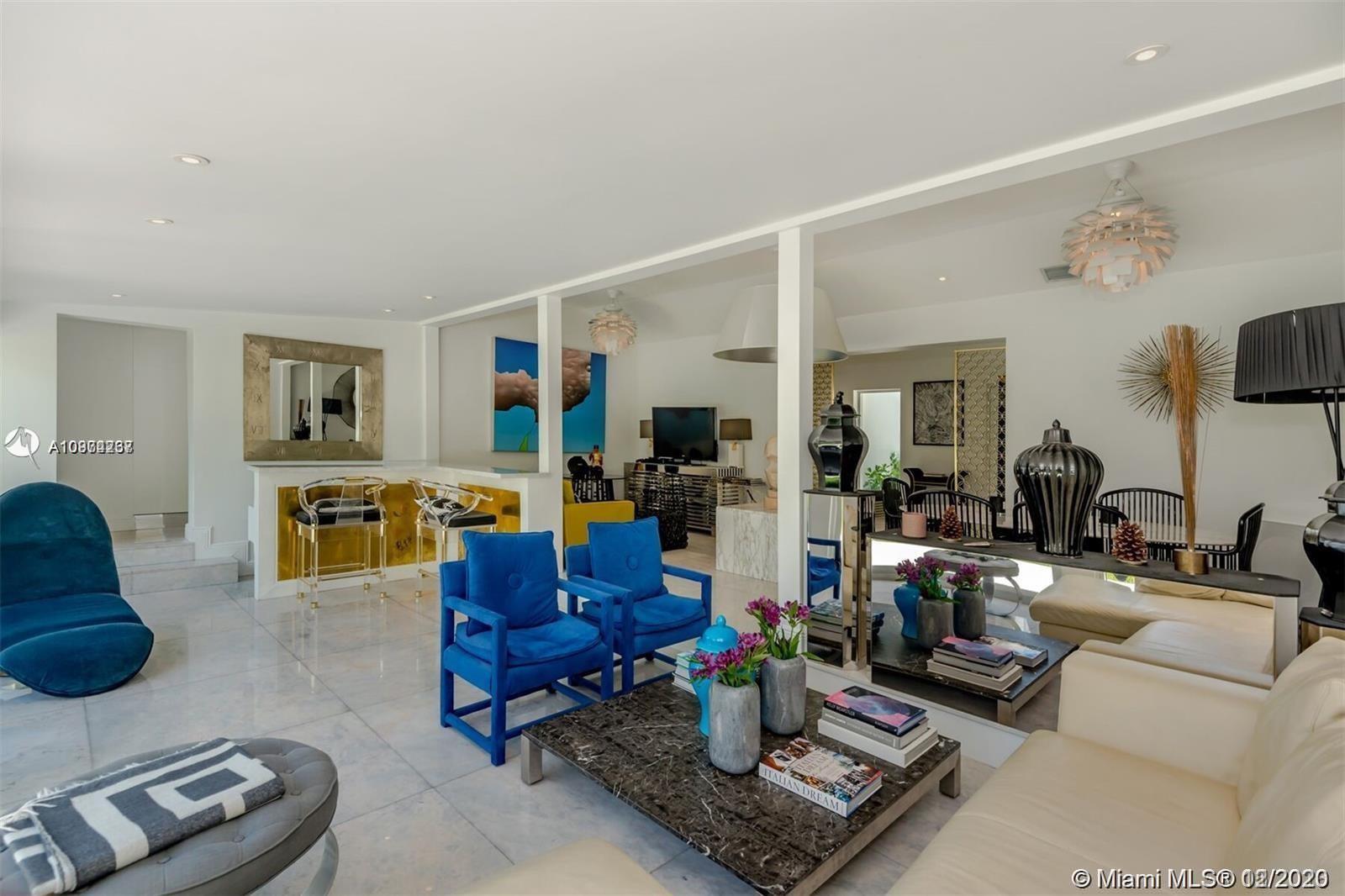 Elegant home located on the guard gated Sunset Island IV. Enter through the grand entryway with fireplace into a sun flooded open format living room-bar area featuring sliding impact windows leading to the tropical backyard setting perfect for entertaining. Pool plans included. This one-of-kind 3 bed/ 3 bath + Maid room is tastefully renovated with luxurious Italian marble throughout and Duravit with Hansgröhe fixtures in bathrooms. Layout is perfect for any type of buyer. 2,560sf as per owner. Partial seller financing available