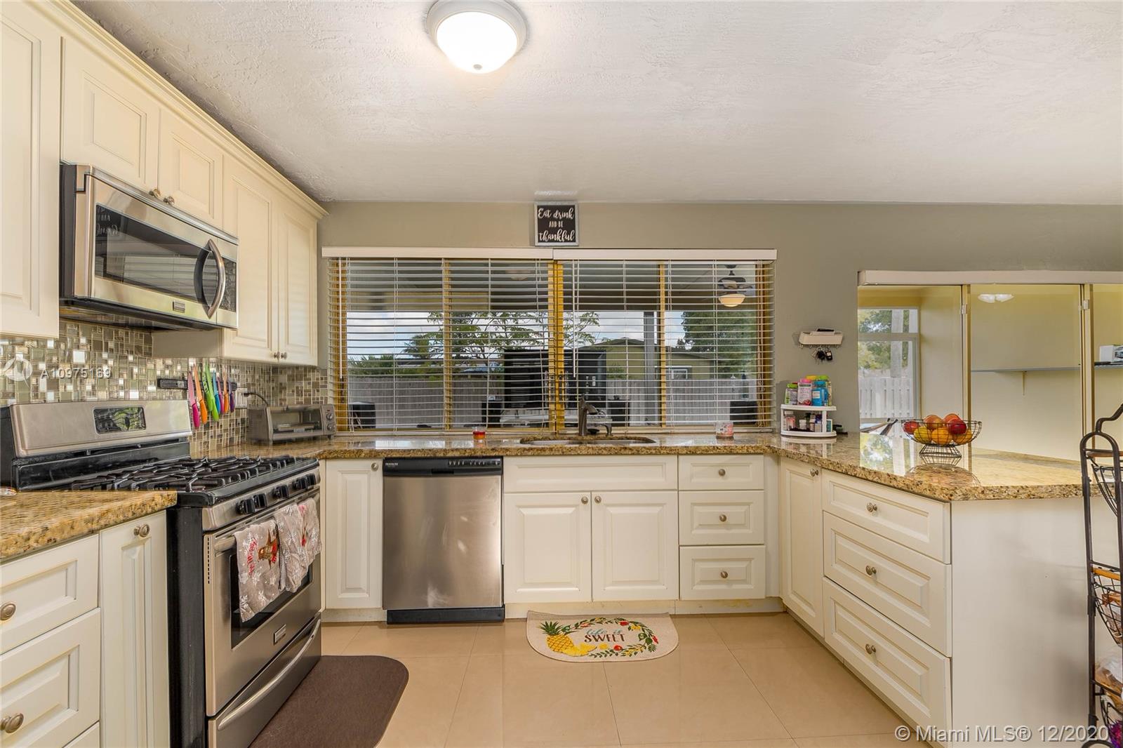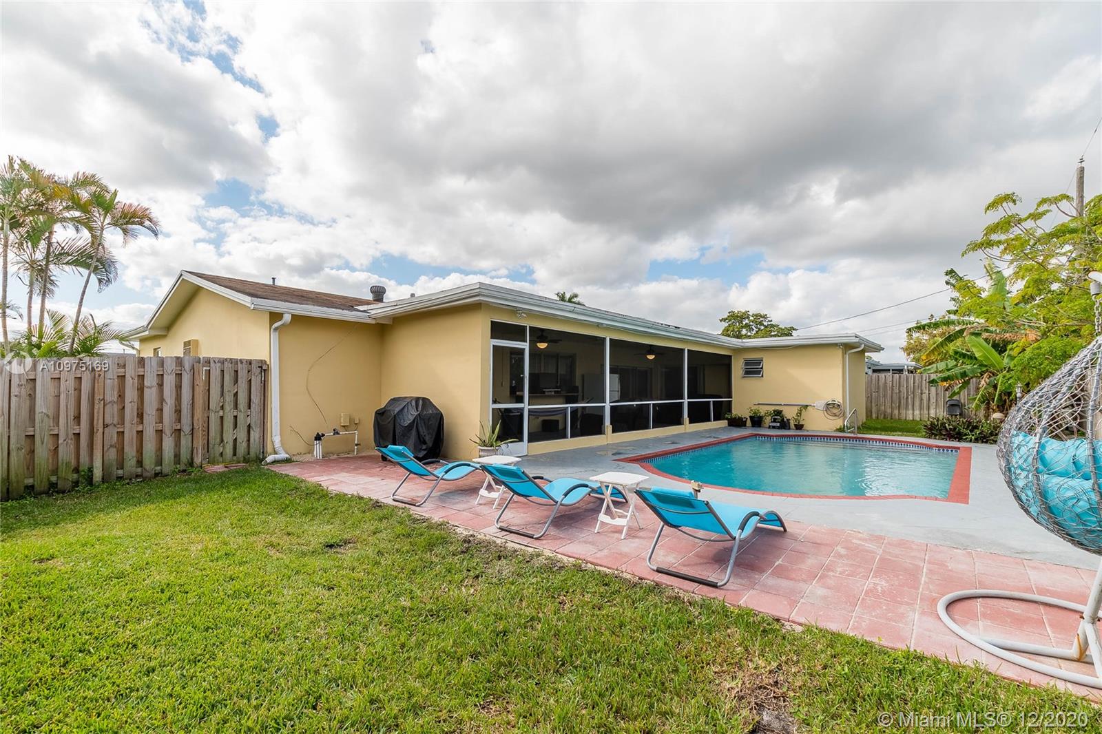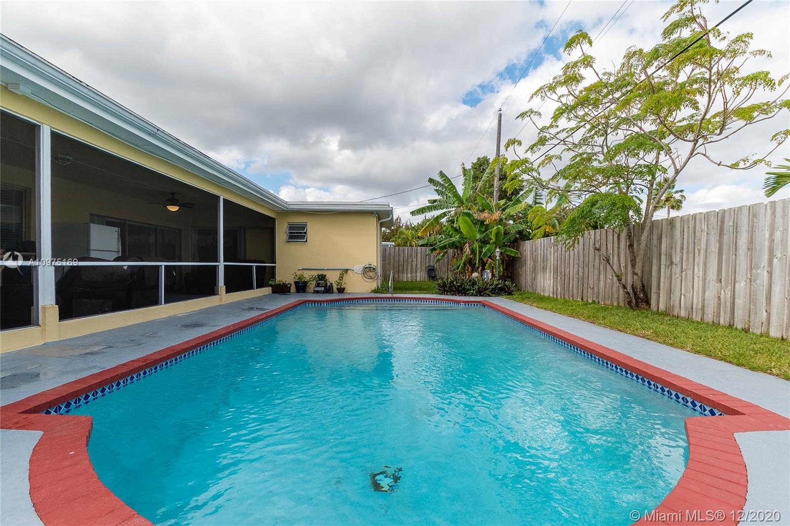 Well kept and upgraded pool home for sale in Sunrise on an oversized corner lot with great curb appeal! This home in the community of Sunrise Golf Village features 3 bedrooms and 2 bathrooms, with a two car garage. Porcelain floors in the kitchen with laminate floors throughout. Spacious kitchen with stainless steel appliances, granite countertops, white cabinets and gas stove. Master bedroom with a large walk-in closet. New pool pump and pavers. Exterior was recently painted. Newer fence, gutters, and A/C. Pool is situated in a spacious gated yard that also features an enormous screened patio that is perfect for entertaining. Dining area and 2 living rooms. Centrally located near schools, restaurants, and shopping centers. No HOA!