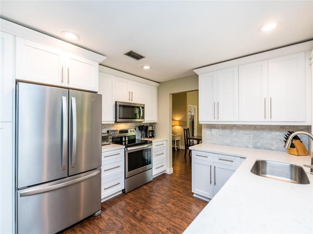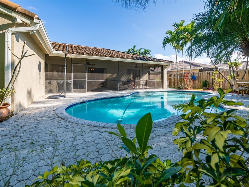 YOU KNOW WHAT YOU MUST DO FAST TO SEE THIS TRULY MOVE IN CONDITION HOME! VERY QUIET, FAMILY COMMUNITY. BIG 35X27 PAVER/FREE FORM POOL(32X17) AREA. HUGE PRIVATE 2014 WOOD & CHAIN LINK FENCED BACK YARD W/CANAL ACCESS, LARGE TREES/LANDSCAPING FOR EXTRA SHADE. 33X9 SCREENED PATIO. COMPLETELY REMODELED KITCHEN W/QUARTZ COUNTERS, ALL SOFT CLOSE 13 CABINETS/10 DRAWERS, 4 SEAT BREAKFAST BAR OPEN TO FAMILY ROOM, STAINLESS STEEL APPLIANCES. TOTALLY, BEAUTIFULLY REMODEL 10X11 MASTER BATH W/QUARTZ DOUBLE VANITY, BIG ROMAN TUB, 5X3 FRAMELESS SHOWER, PLANK TILE FLOOR. MASTER BEDROOM GREAT VIEW OF POOL/BACK YARD. ALL UPGRADED PERGO WOOD FLOORING - NO CARPET. FULLY INSURABLE TILE ROOF 2014. NO POPCORN CEILINGS. VERY WELL MAINTAINED FRONT/BACK YARDS W/LOVELY LANDSCAPING. VAULTED CEILINGS.
