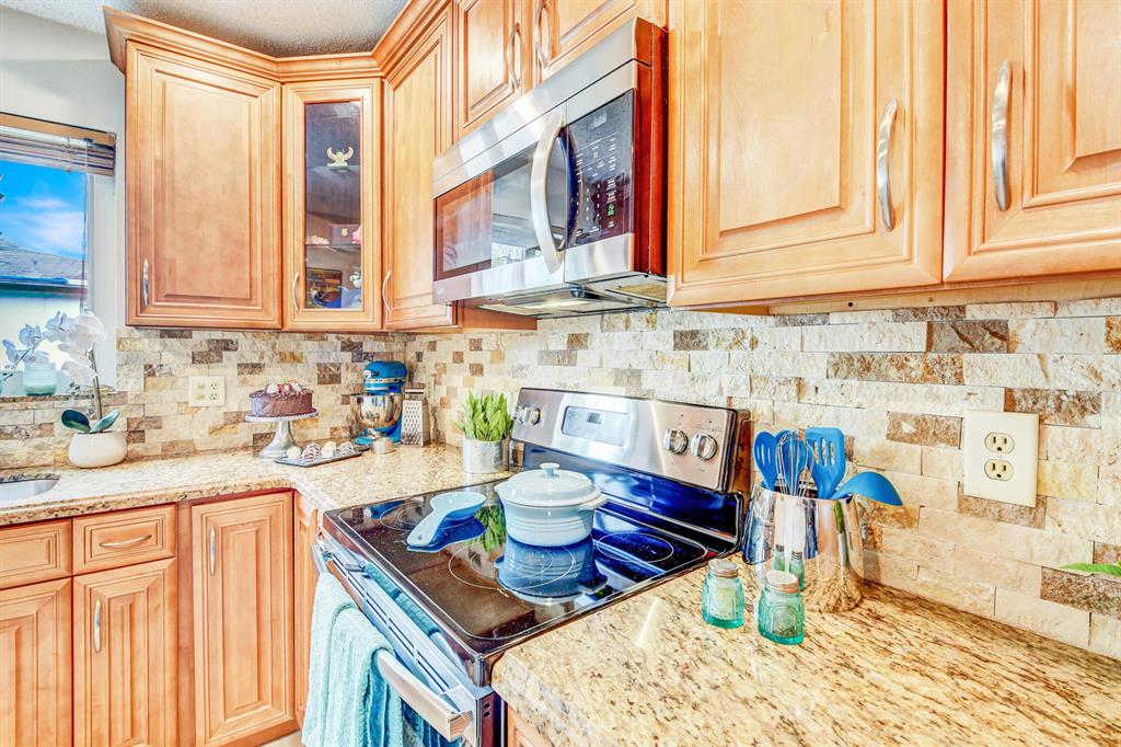 Spacious & open 4 Bedrooms+2 Bonus rooms, 2 Bath, 1 Car Garage, 2 car wide driveway, ENORMOUS POOL Home w/fenced in huge yard (over 10,000 square feet!) with tons of landscaping! Located on one of the biggest lots in Palmetto Pines Plus on a cul-de-sac. Tile and laminate flooring throughout. Fabulously updated & stylish kitchen w/granite counter tops, natural stone backsplash, newer stainless appliances & a plethora of custom wood cabinets. The master bedroom has an en-suite bathroom plus a door that leads out to the pool, making it a cabana bathroom too! Master suite & guest bath are both updated. Impact doors & windows/Roof 2006/flat roof 2020. Huge bonus room makes a great family room or man cave & 2nd bonus room makes great office or extra bedroom. Meticulous condition! Move in Ready!